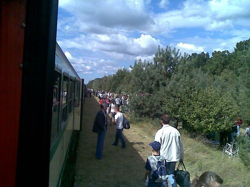 Piknik w Kownatkach dla uczestników pociągu turystycznego Lublin-Łuków. Tu pociąg wraca z Łukowa, gdzie lokomotywę przestawiono na czoło składu.