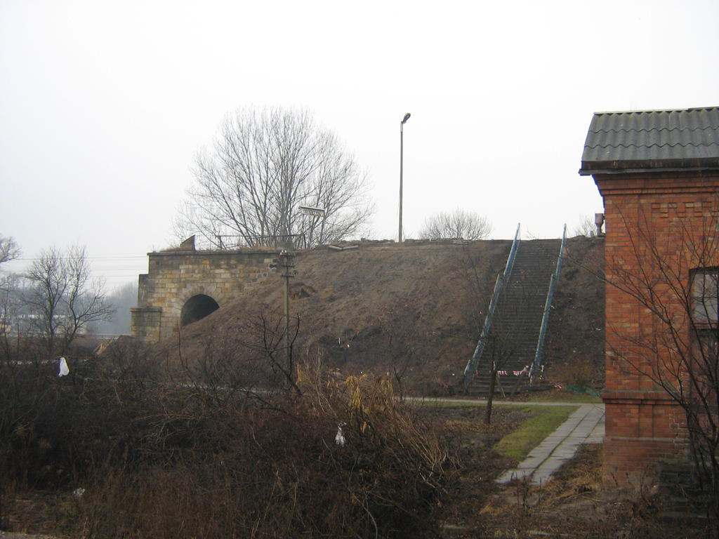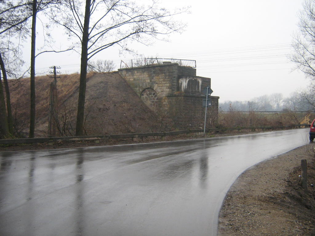 Widok na przyczółek mostowy zlokalizowany od strony Lublina. Most został zdjęty, stanie w tym miejscu nowy most. Z rozmów z robotnikami pracującymi przy modernizacji tej linii wynika, że stare przyczółki zostaną zachowane, ale nowy most będzie nieco niżej osadzony.