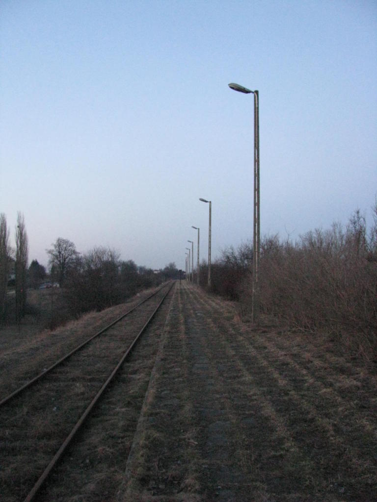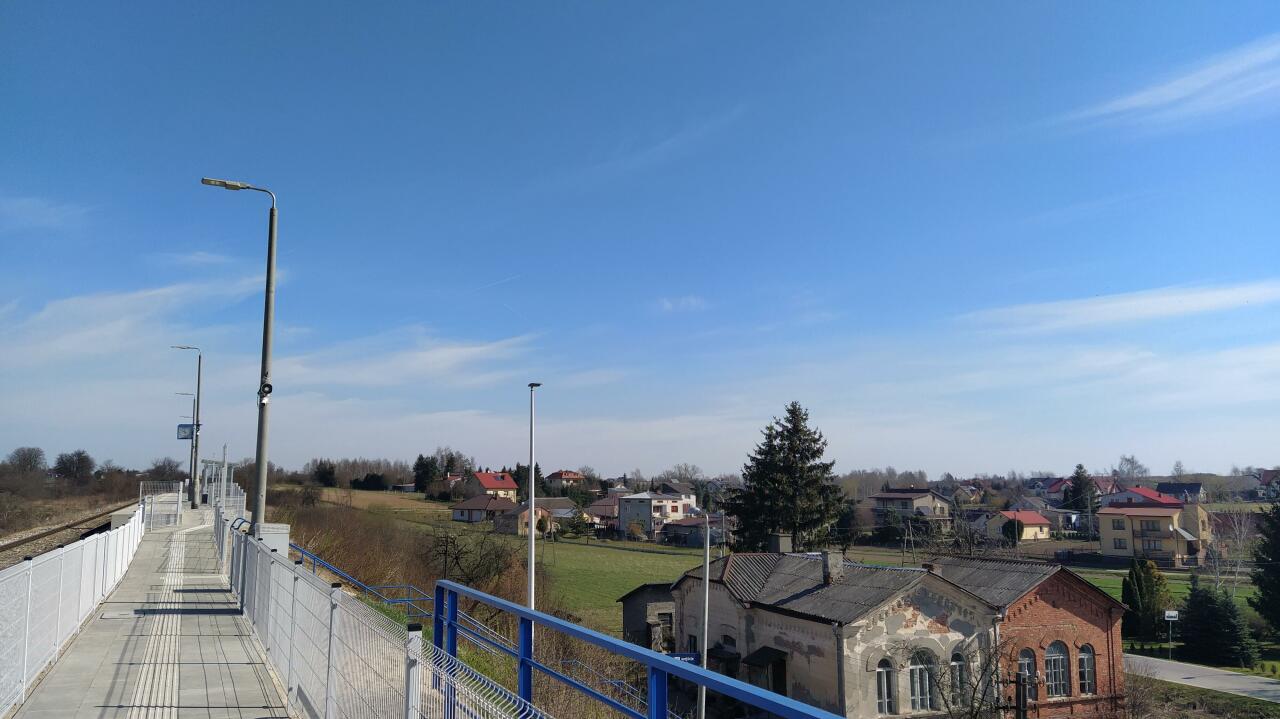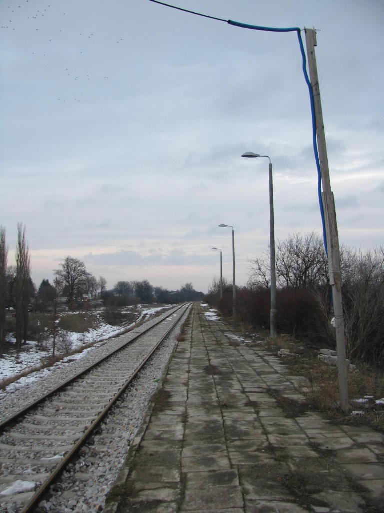Po wymianie wiaduktu na nowy, wymieniono również latarnie peronowe wraz z słupami. W dniu wykonywania tego zdjęcia latarni na peronie było mniej niż dotychczas (mniej więcej od połowy peronu latarni nie było wcale). Widać także nowy tor. W miejscu starego toru na podkładach drewnianych znajduje się tor na podkładach betonowych ze spawanymi szynami (stare szyny były skręcane + podwójne podkłady). W dniu 5 luty 2013 r. peron był taki jak dawniej - nie został wymieniony.