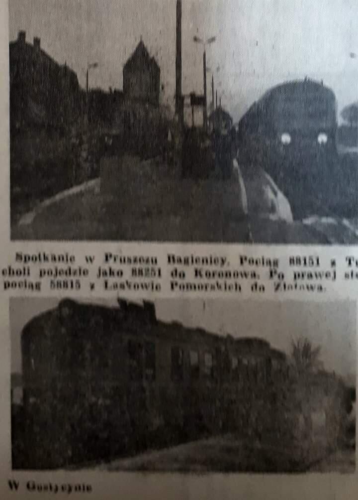 "W piątek 24 listopada 1989 roku z Pruszcza Bagienicy do Tucholi wyruszyły po raz ostatni cztery pociągi pasażerskie. Obecnie odcinek ten przemierza dziennie już tylko jedna para. Owego listopadowego dnia na trasę wyruszył spalinowy wagon motorowy SN61-84. Często brakowało w nim miejsc do siedzenia.