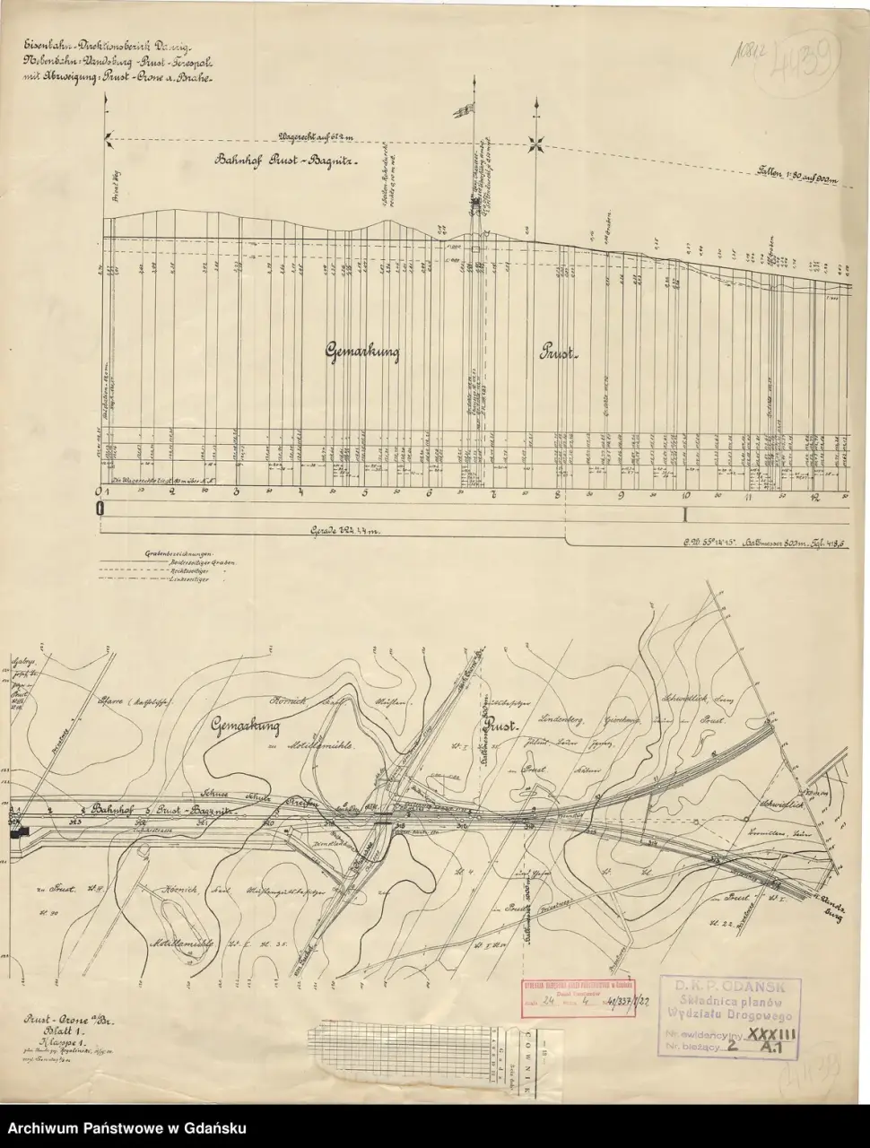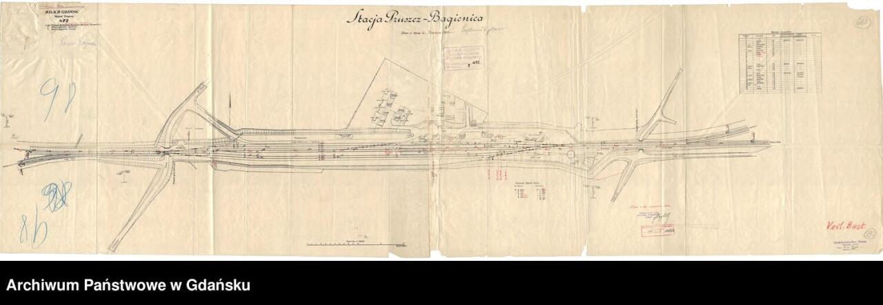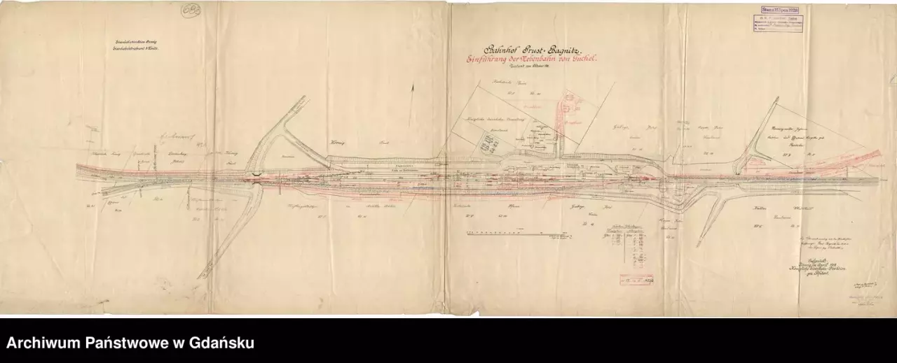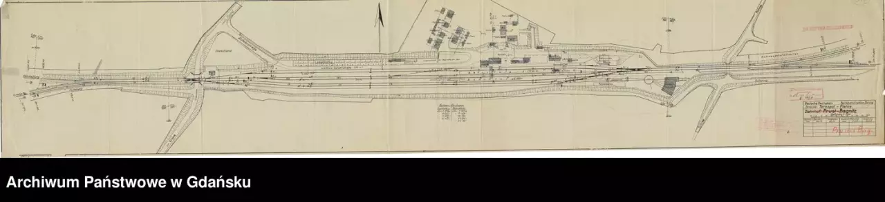 Mapa stacji Pruszcz Bagienica. Stan na dzień 1 stycznia 1931r. Zbiory Archiwum Państwowe w Gdańsku udostępniło do publicznego użytku.