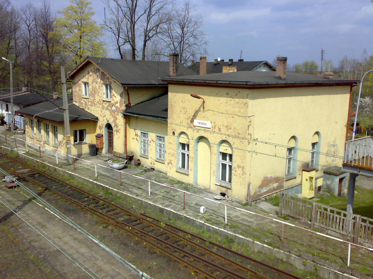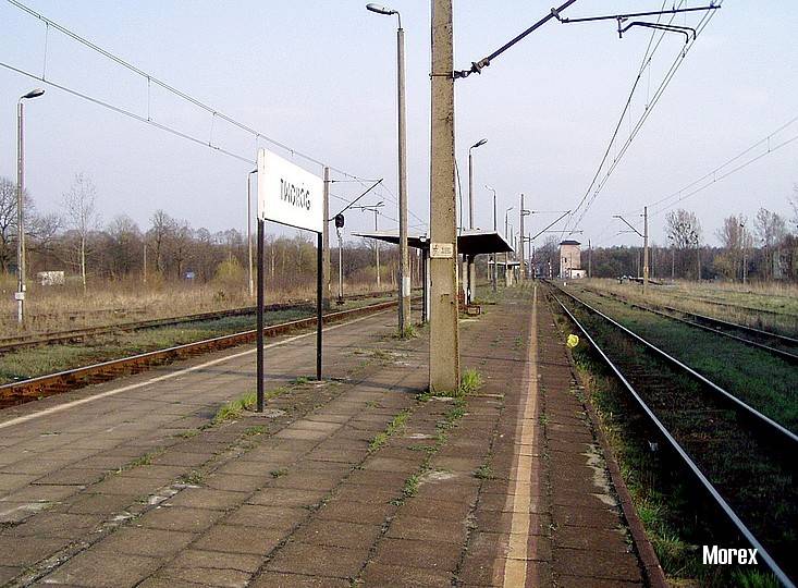 Widok na perony i dworzec w Tworogu. Wjazd od strony Fosowskiego.