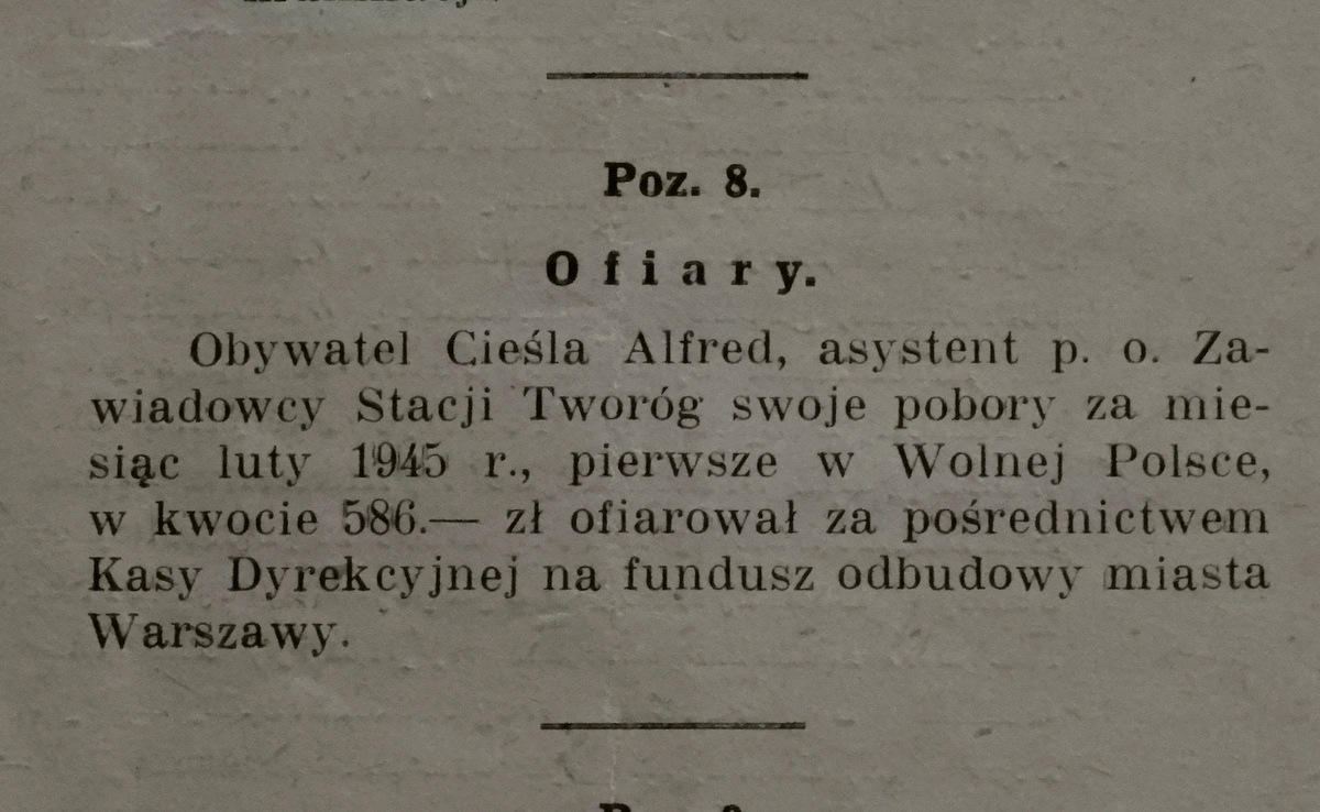 Z Dziennika Zarządzeń DOKP w Katowicach nr 1 z 30 maja 1945.