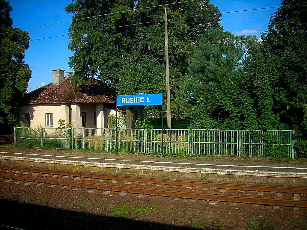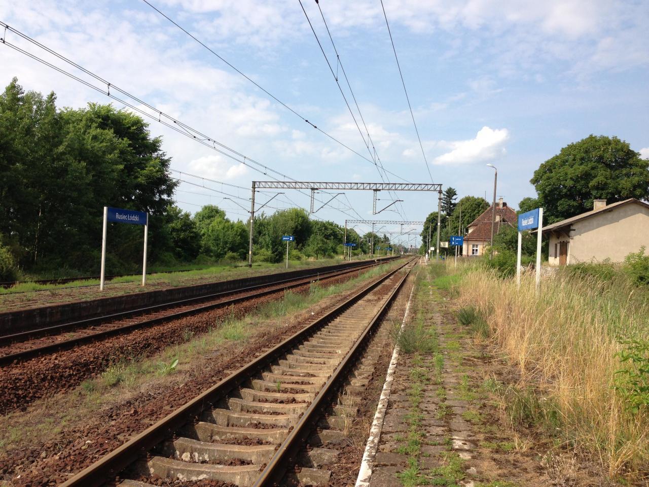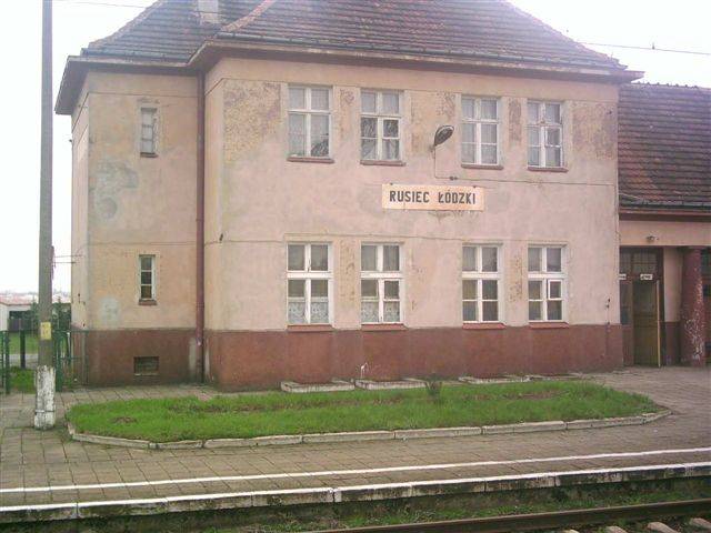 Nastawnia wykonawcza RŁ1 na stacji Rusiec Łódzki. W lewo dworzec, w prawo Chorzew Siemkowice. Widok z okna pociągu InterRegio "Bursztyn", relacji Gdynia Główna - Katowice.