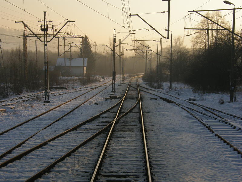 Widok w kierunku Suchej Beskidzkiej. Głowica rozjazdowa od strony Skawiny.