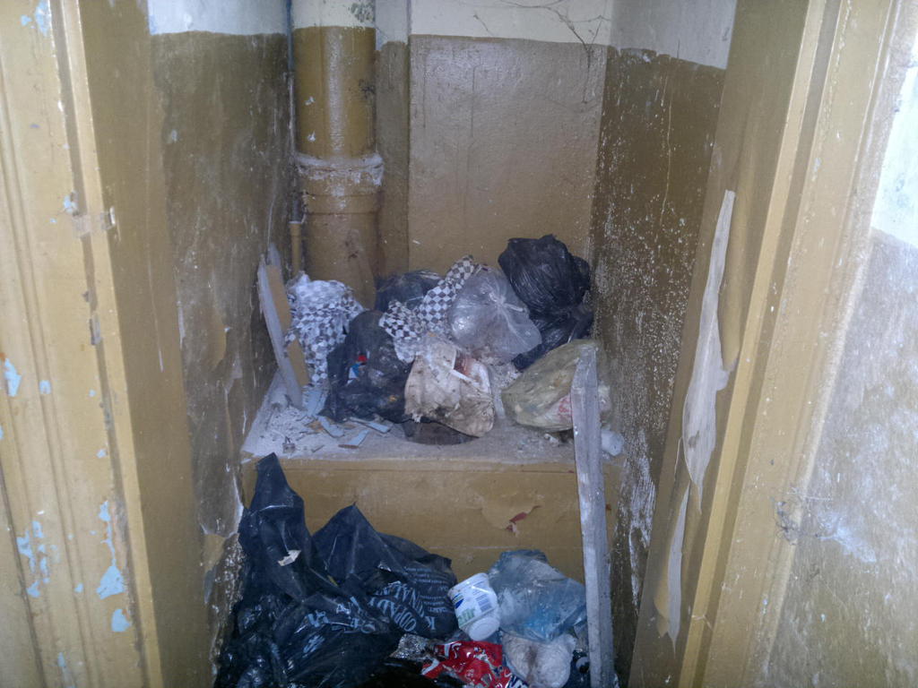 Tak wyglądała wspólna toaleta w części mieszkalnej, usytuowana na parterze przy drzwiach wejściowych.