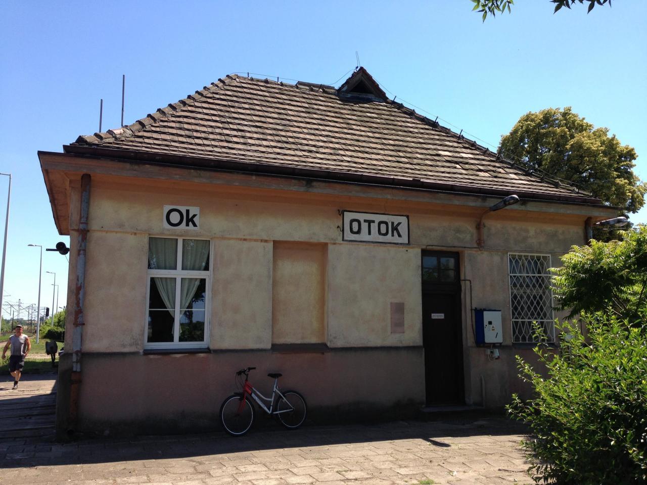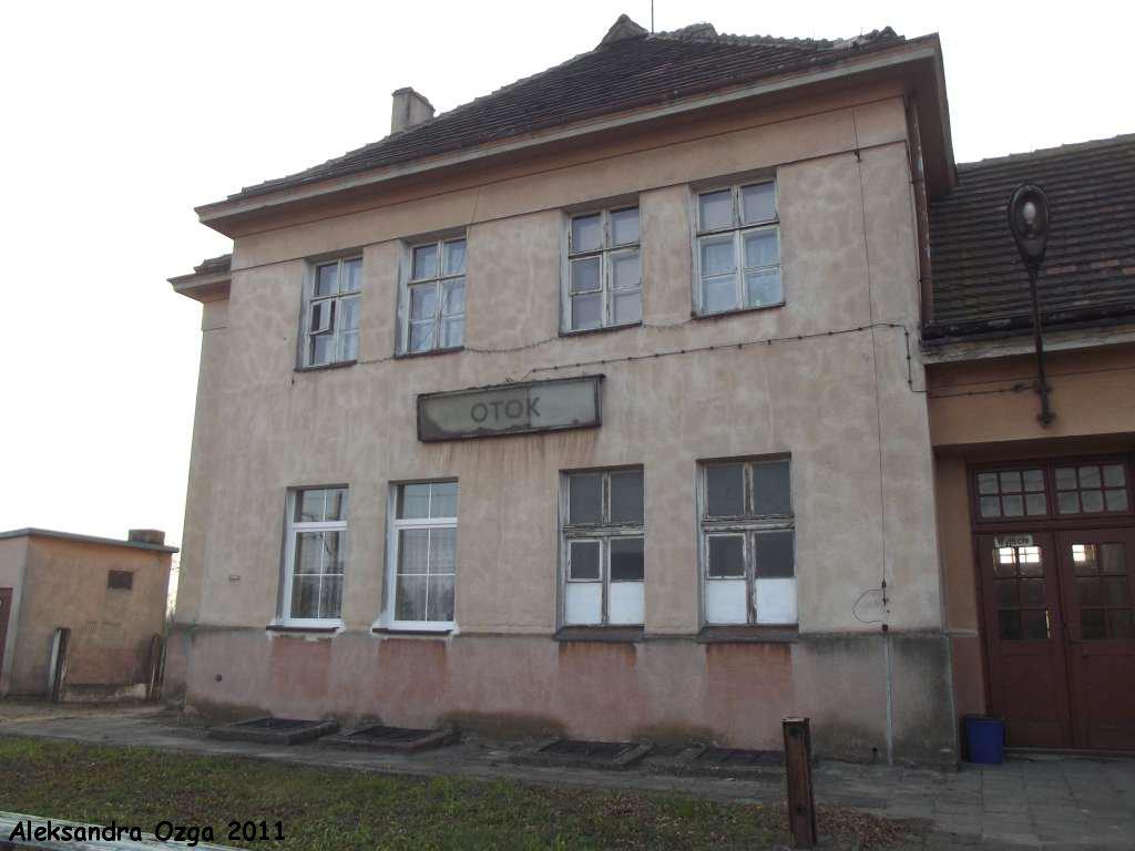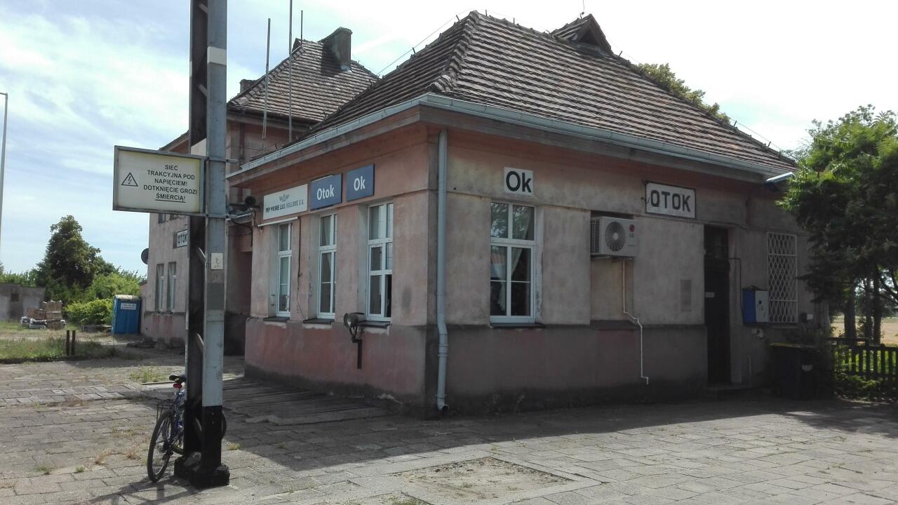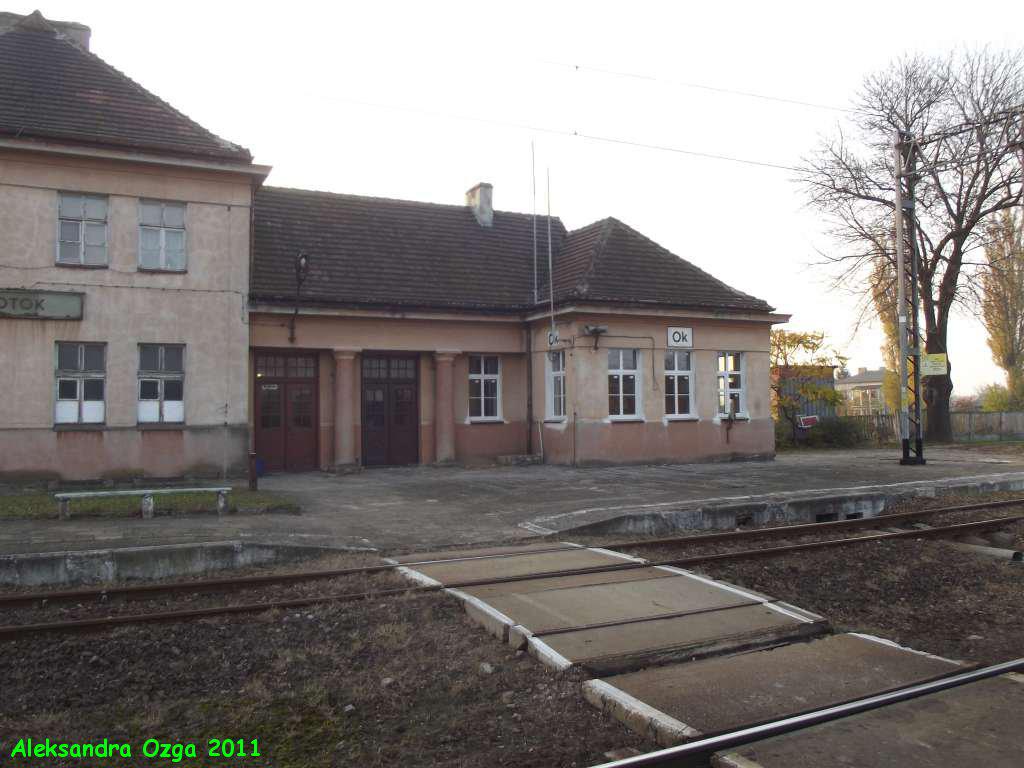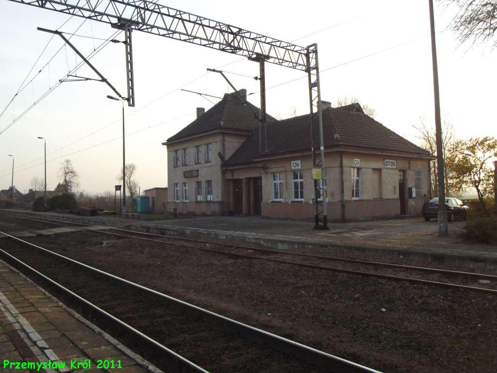 Bocznica w Otoku raczej nie nadaje się do manewrów. W tle budynek dworca. Widok od strony wjazdu z Ponętowa/Inowrocławia.
