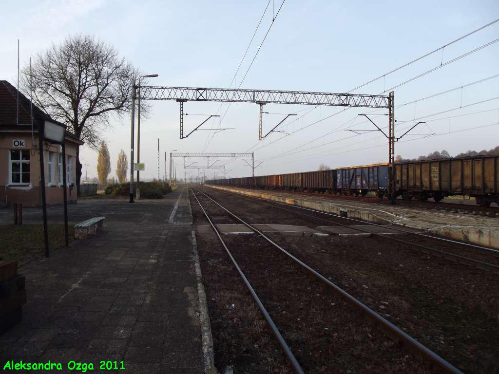 Perony numer 1 i 2 w Otoku. Z lewej budynek dworca z nastawnią dysponującą. Widok w kierunku Ponętowa/Inowrocławia.