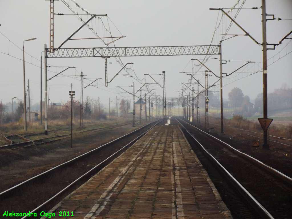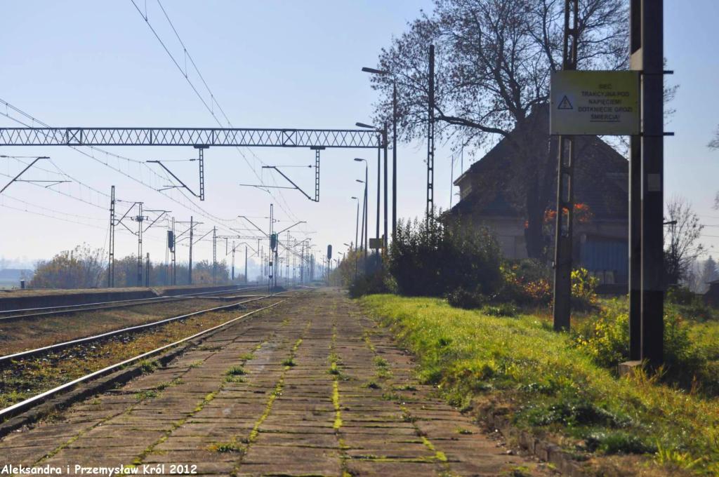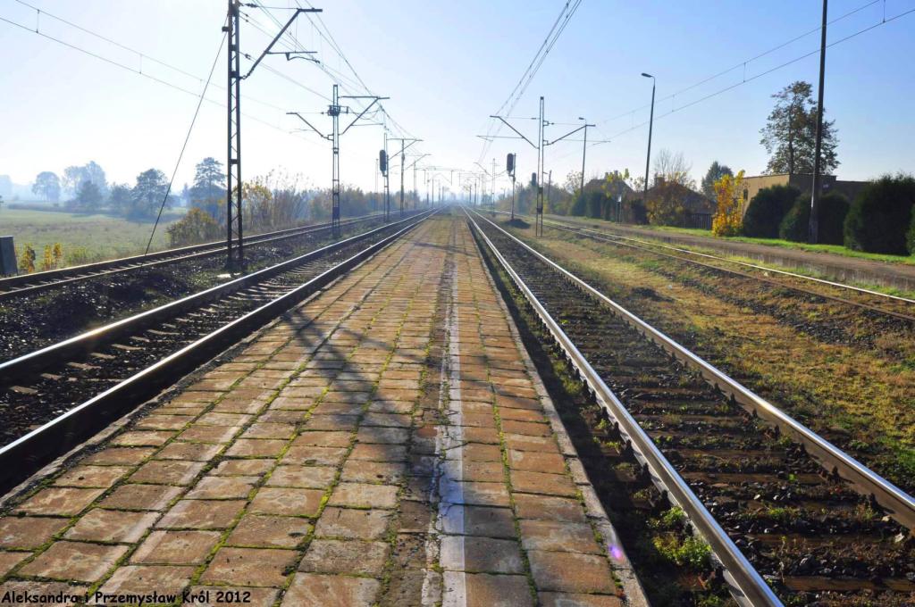 Peron 2. Z lewej (poza kadrem) budynek dworca. Widok w kierunku Zduńskiej Woli.