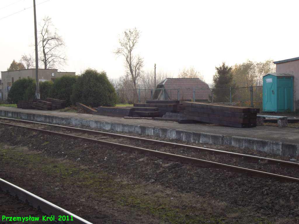 Podkłady na peronie 1. W prawo dworzec, w lewo Zduńska Wola.