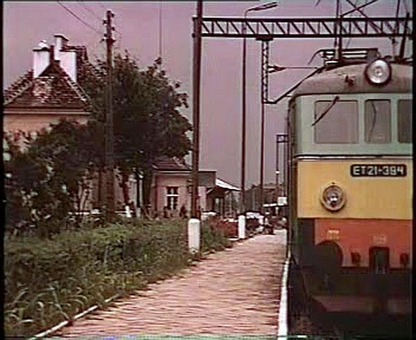 Kadr z filmu "Nad rzeką, której nie ma" reż. Andrzej Barański, zdjęcia Ryszard Lenczewski. W tle budynek dworca. Widok od strony Ponętowa/Inowrocławia.