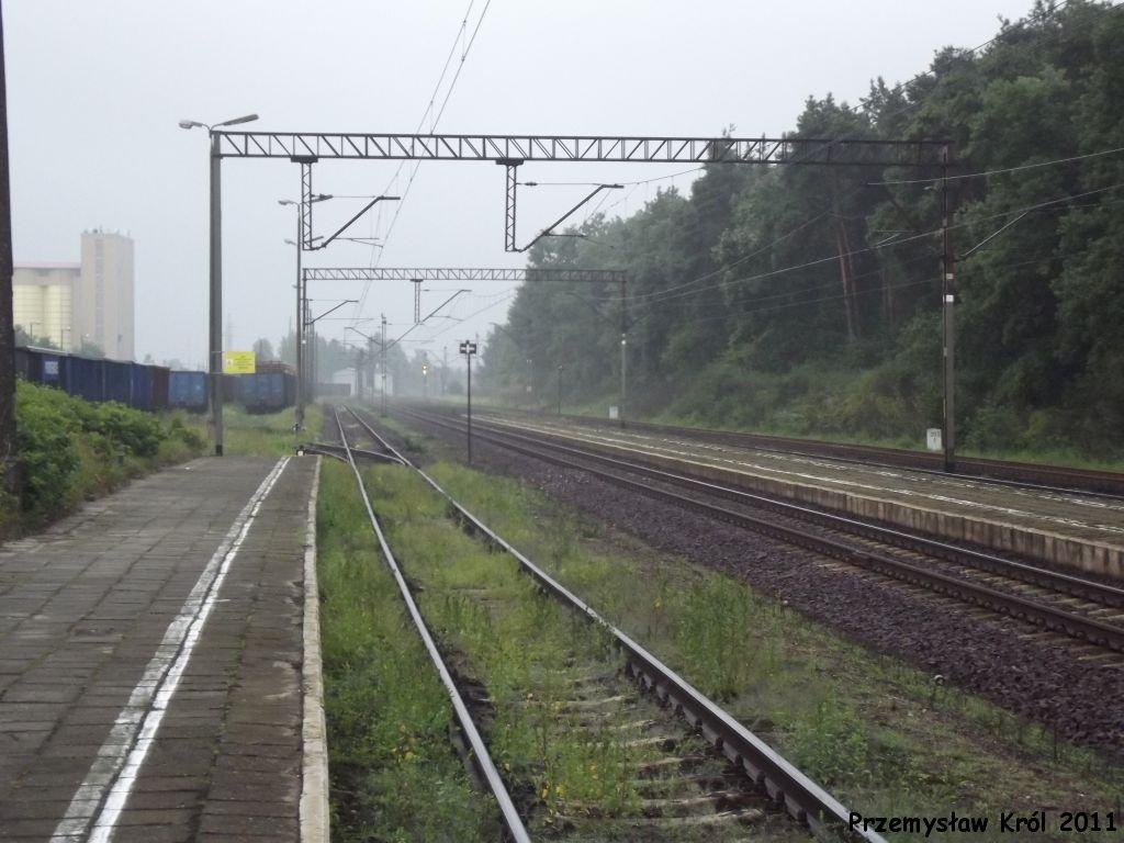 Poddębice, peron, km 203,3. Widok w stronę Ponętowa/Inowrocławia.