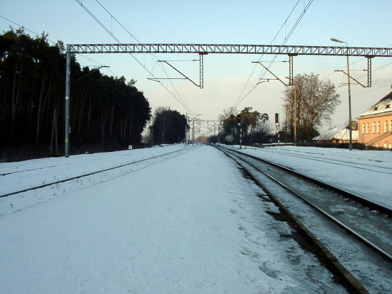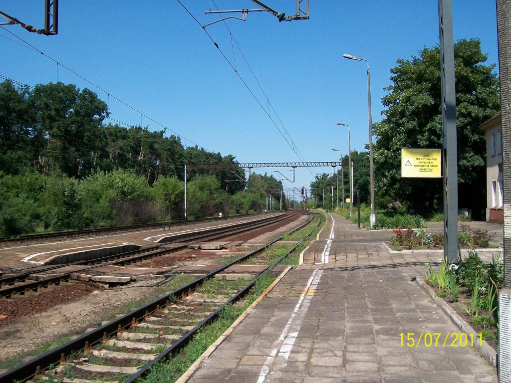 Widok w stronę Zduńskiej Woli. Peron pierwszy po lewej i drugi po prawej.