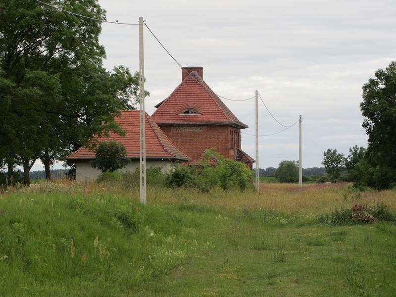 Opis ogólny: Stacja służyła głównie do odbioru płodów rolnych z okolicy, oraz dostarczania węgla i nawozów do majątku w pobliskim Staniewie. W latach 20-tych XX w. w sezonie ze stacji odbierano do 5 wagonów buraków cukrowych dziennie. Na stacji były dodatkowe tory (mijanka i rampa przeładunkowa z której ślady ocalały do dziś.) (info: Adam Żmuda, 30-10-2009) Opis infrastruktury: Tory leżały jeszcze w 2006, obecnie rozebrane. Obok budynku głównego był posterunek blokowy lub waga - zdewastowany, używany jako szopa na siano. (info: Adam Żmuda, 30-10-2009) Opis budynków: Systematycznie rozbierane przez złomiarzy. (info: Adam Żmuda, 30-10-2009) |