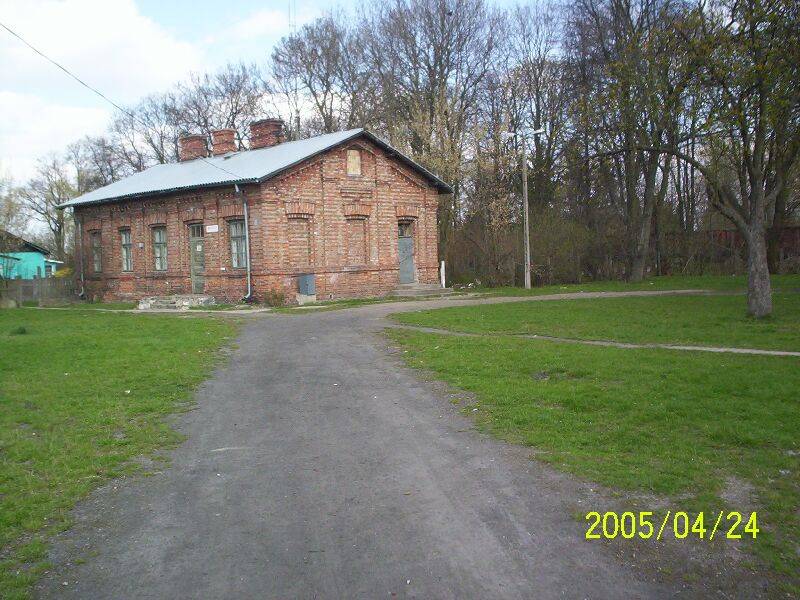 Budynek nastawni wykonawczej od strony wjazdu z Małkini. Nadal w dobrym stanie może dlatego, że jest blisko przejazdu kolejowego.