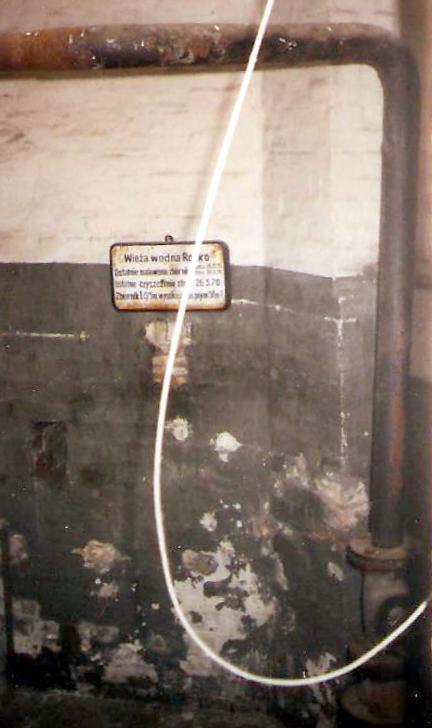Zdewastowana wieża wodna stoi obok budynku b. dworca kolejowego. Podobne wieże są m.in. na stacjach: Czarnków, Nowy Tomyśl, Połczyn Zdrój, Unisław, luty 2014 r. (info: Bolesław Wojtyniak, 18-02-2014). |
