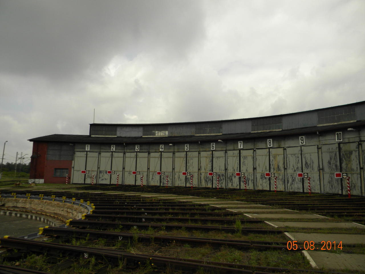 Większy, zachodni wachlarz lokomotywowni - B - położony dalej od peronów. Widok w kierunku zachodnim. Z lewej tory wyjazdowe do Chorzowa Batorego i Hajduk (Rudy Kochłowice i Panewnika).