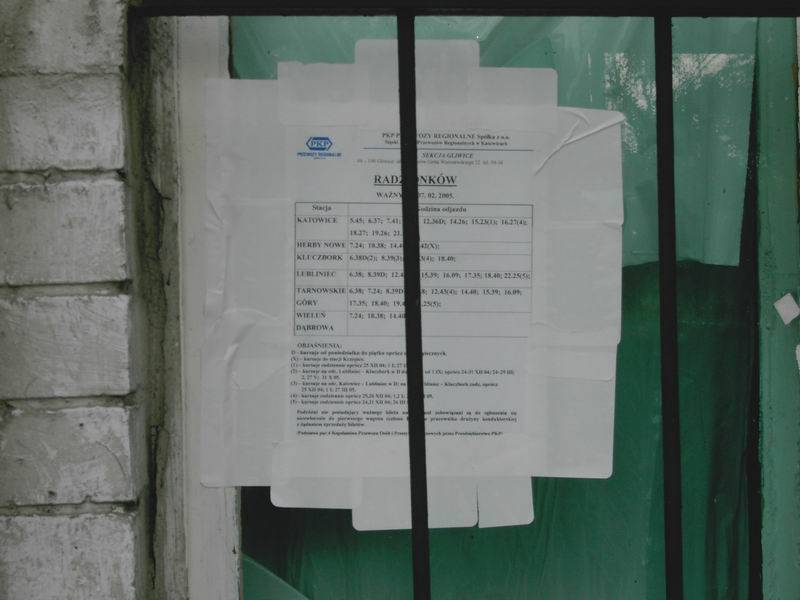 Tagi: perony/rampy/place/zadaszenia, tablice informacyjne/plakaty/ogłoszenia