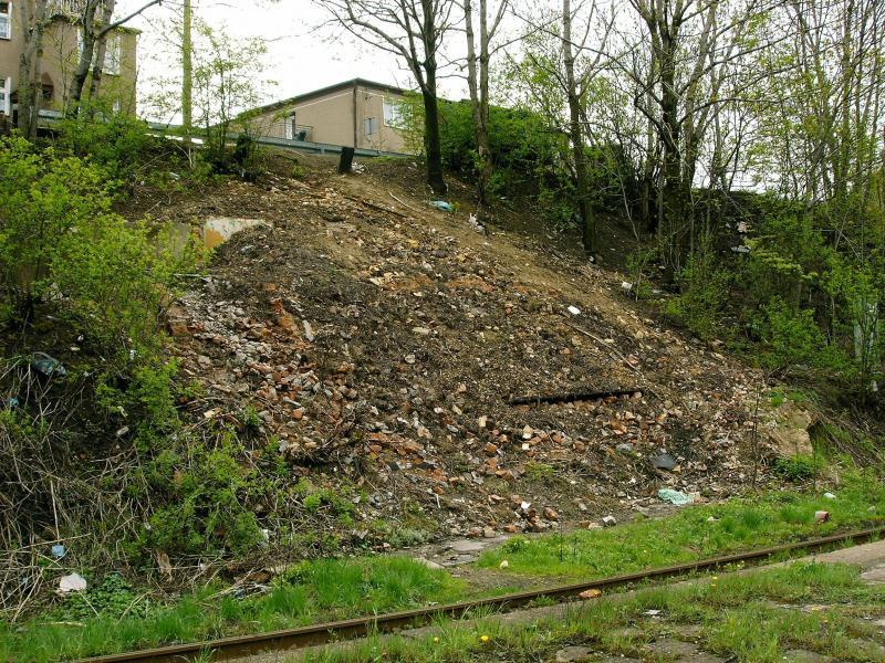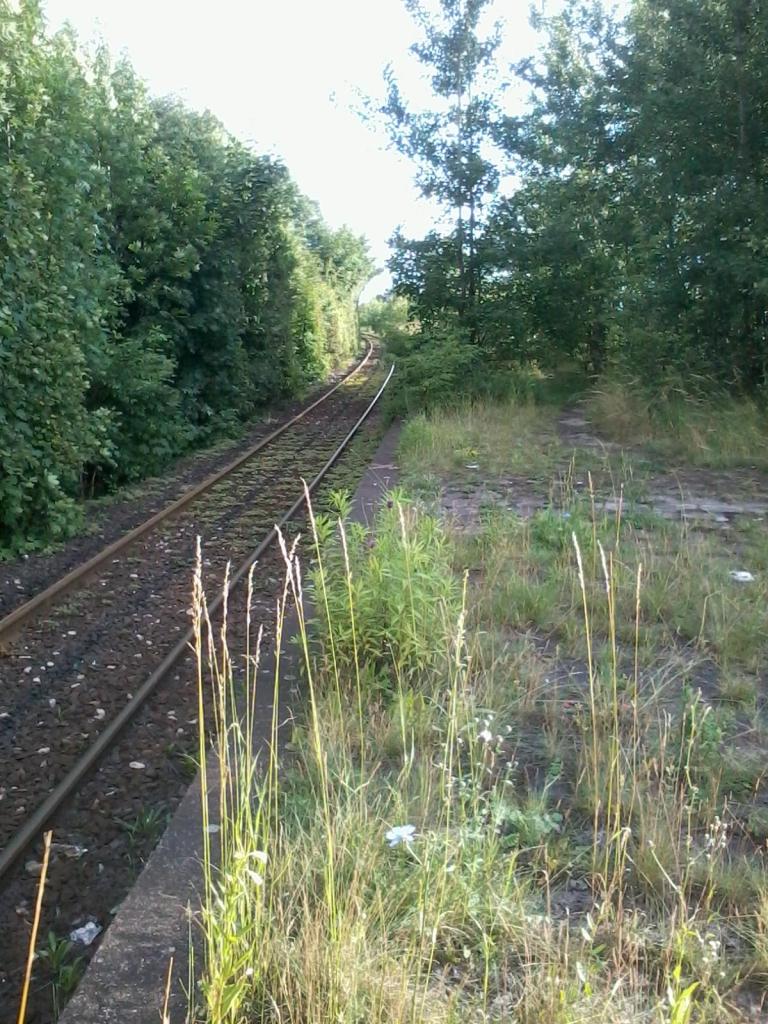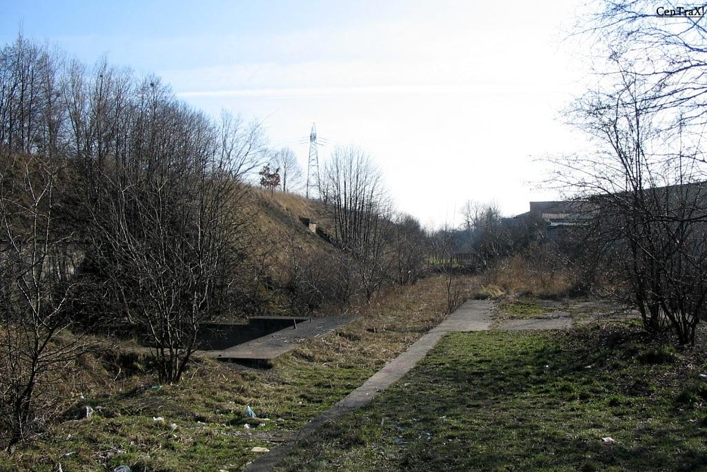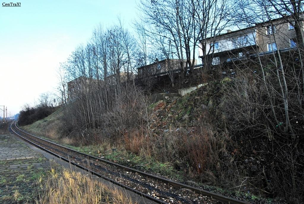 Gdzieś w tych okolicach (prawa strona zdjęcia) stał budynek dworca widoczny na starych pocztówkach. Widok w kierunku stacji Radzionków/Tarnowskich Gór.