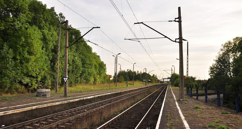 Peron 2 z wiatą. Z lewej peron 1. Widok w kierunku stacji Radzionków/Tarnowskich Gór.