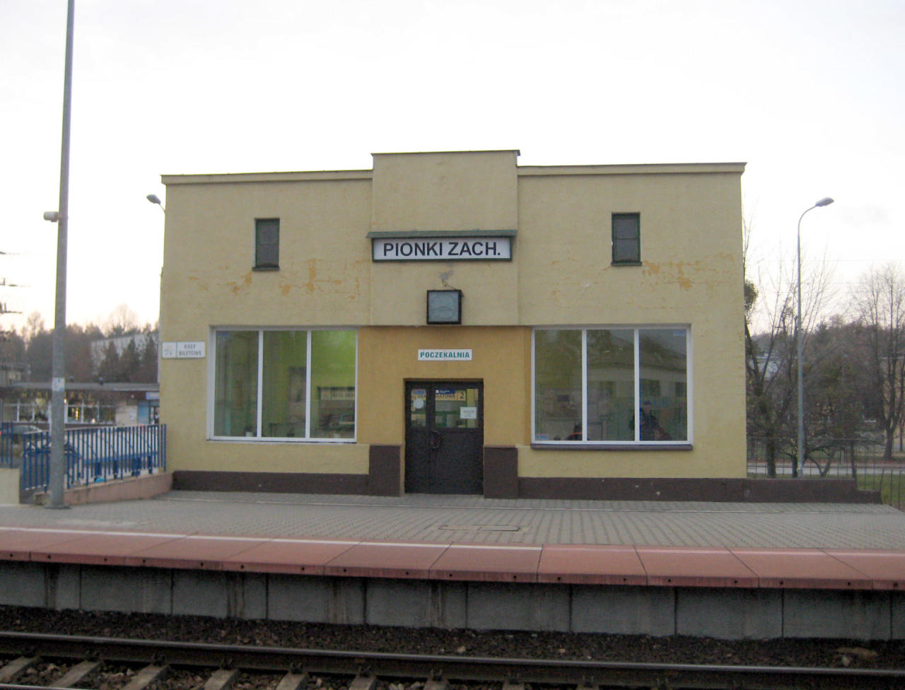 Opis ogólny: Przystanek Pionki Zachodnie mieści się w centrum miasta i pełni rolę głównego dworca w mieście. Przyjmuje pociągi regionalne i dalekobieżne. Opis budynków: Budynek dworca wyremontowany, została dobudowana winda. Ogrzewana poczekalnia i toaleta dostępna dla podróżnych. Opis zadaszenia: Wiaty przystankowe (po dwie na peron), dodatkowo poczekalnia zewnętrzna przy budynku dworca. (info: Michał Marciniak, 11-01-2024). |