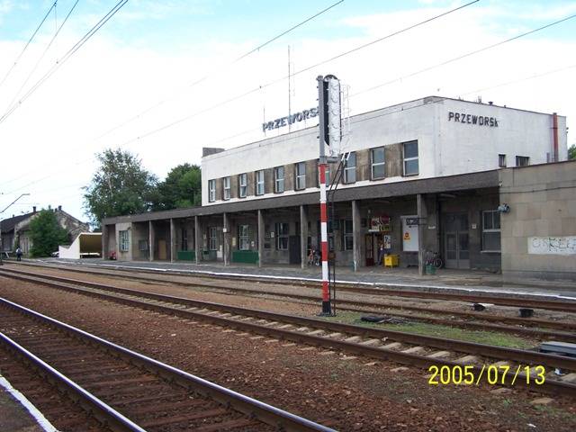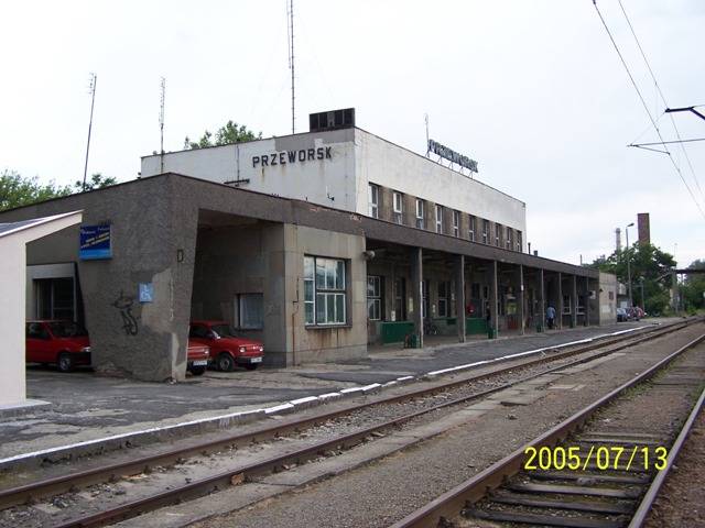 Dworzec kolejowy w Przeworsku. Widok od strony podjazdu, w kierunku północno-wschodnim.