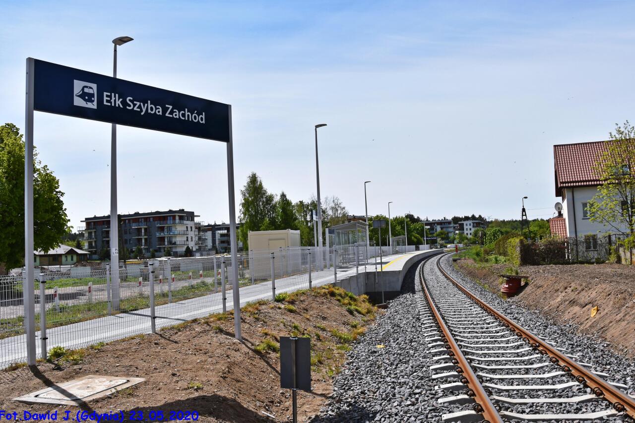 Zmiana kategorii przejazdu kolejowo-drogowego z A do D nastąpiła w drugiej połowie lat 90-tych XX wieku. Obok peronu znajduje się utwardzony kostką granitową plac manewrowy, który niegdyś służył jako pętla nawrotowa dla komunikacji miejskiej. Przy reaktywacji połączeń pasażerskich w 2010 roku pojawiła się tablica z nazwą stacji oraz rozkład jazdy. Ten punkt nie wymagał żadnych prac, bowiem całość była zadbana. W 2014 roku dokonano drobnych prac remontowych krawędzi peronowej. Wcześniej wymieniono tablicę stacyjną (z 2010 roku) oraz ustawiono gablotę rozkładu jazdy. W wyniku modernizacji linii kolejowej nr 219 na odc. Szczytno-Ełk oraz prac w związku z budową linii kolejowej E75 "Rail Baltica" przystanek osobowy Ełk Szyba Zachód znalazł się obrębie stacji Ełk, dawniej stacji Ełk Towarowy (zmiana lokalizacji semafora wjazdowego oraz ustawiono semafor wyjazdowy grupowy). Przejazd ponownie z rogatkami. Obsługa usrk z LCS Ełk. |