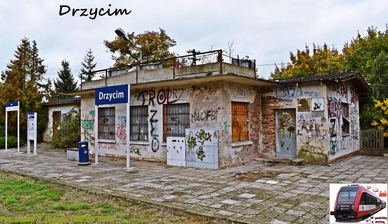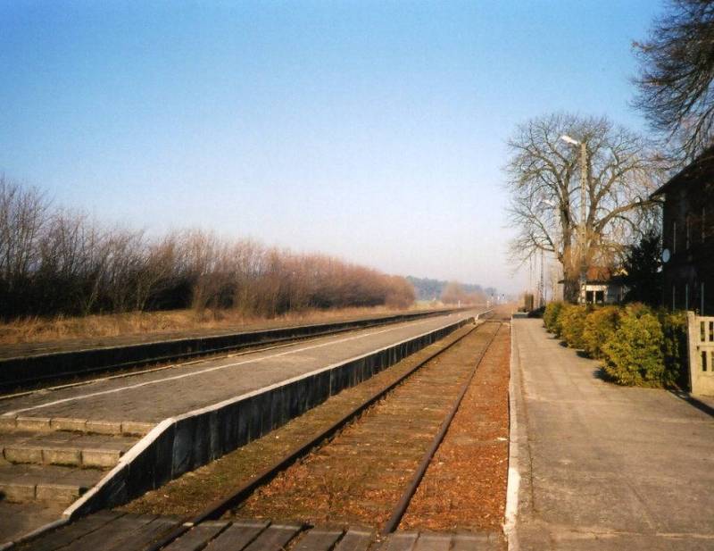 Drzycim, widok w kierunku Wierzchucina. Z prawej strony peronu i lewej toru - puste miejsca po rozebranych torach dodatkowych.