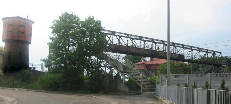Stacja PKP Wieruszów. Wieża wodna i kładka nadziemna.