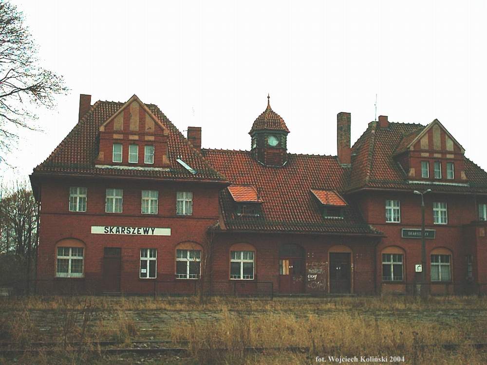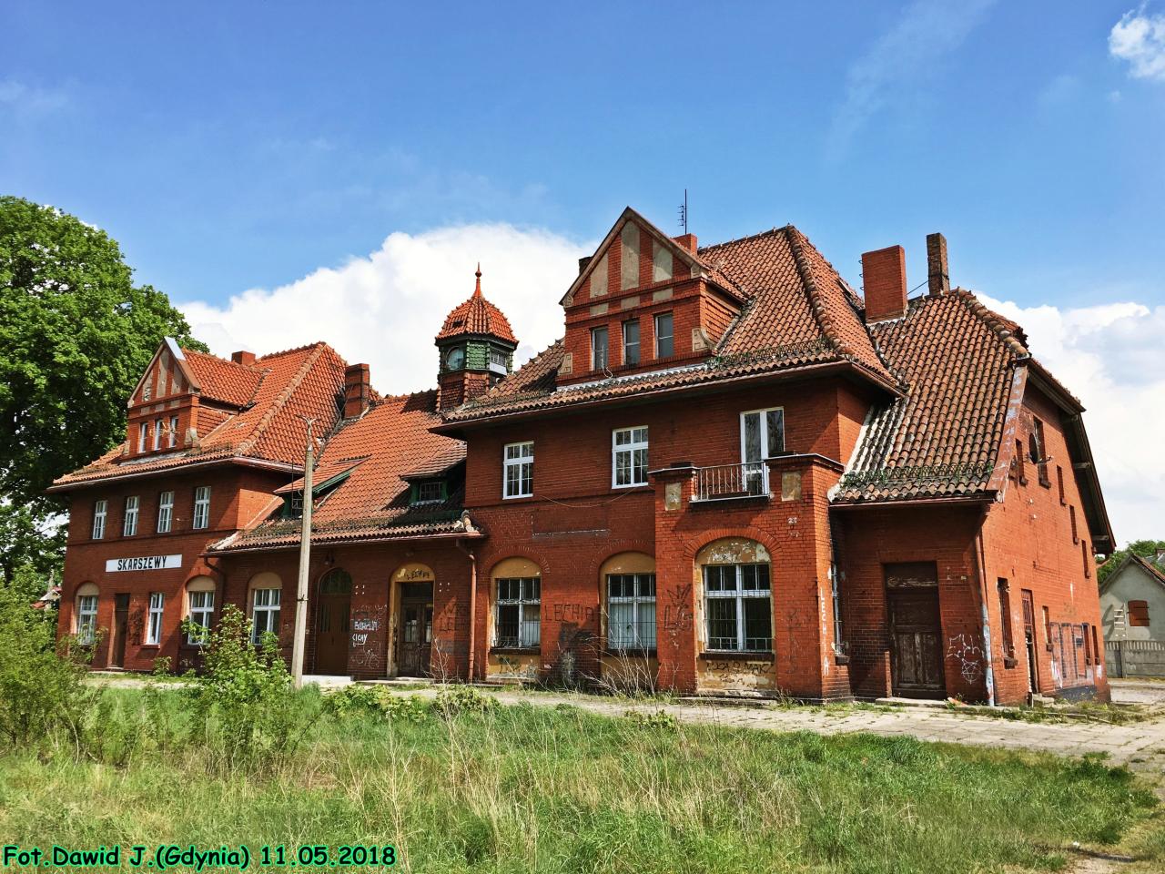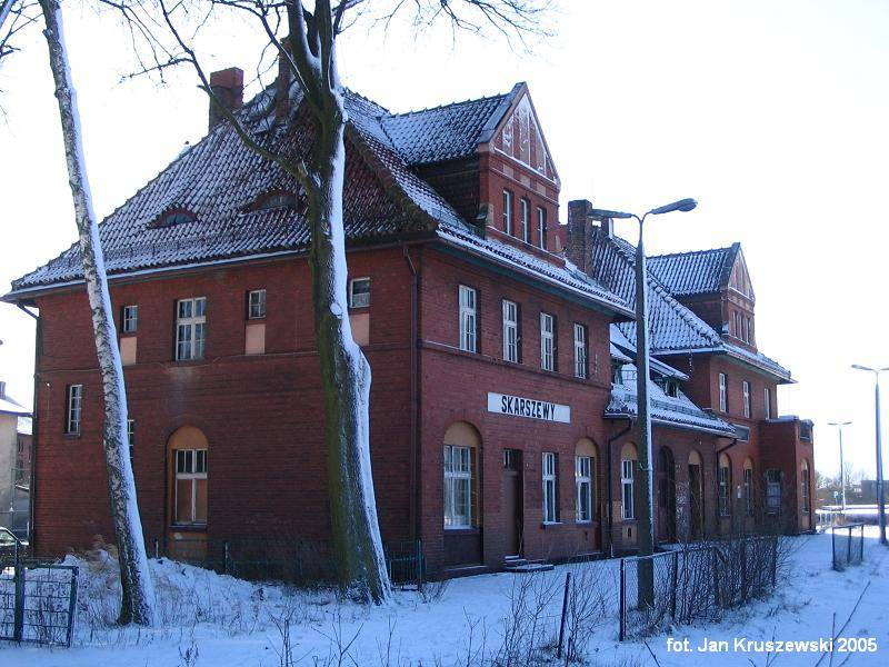 Perony były trzy, a przynajmniej są na niemieckim planie stacji Schöneck (Skarszewy), datowanej na z 1914, w Archiwum Państwowym w Gdańsku, na którym jako Bahnsteig (peron kolejowy) obrysowany i opisany jest także teren przy dworcu. Link do planu https://www.szukajwa…