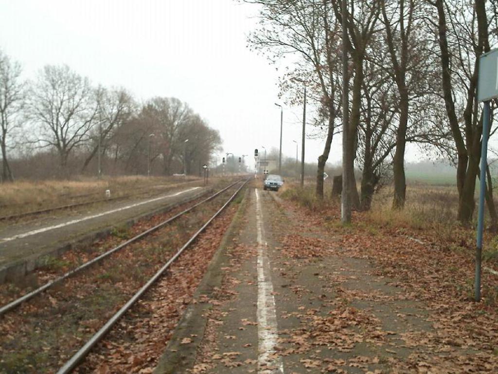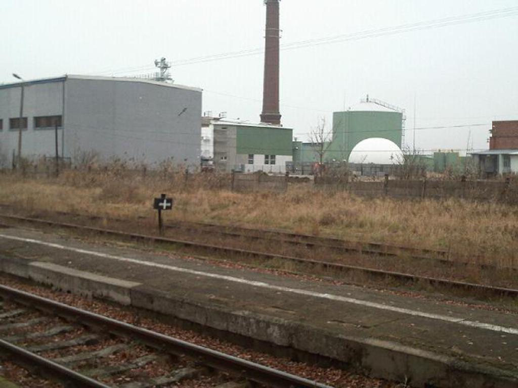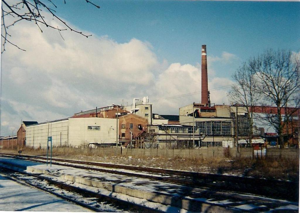 Zdjęcie wykonane zimą 2005 roku. Przedstawia widok z peronu na cukrownię, która dziś nie wygląda tak jak na tym zdjęciu.