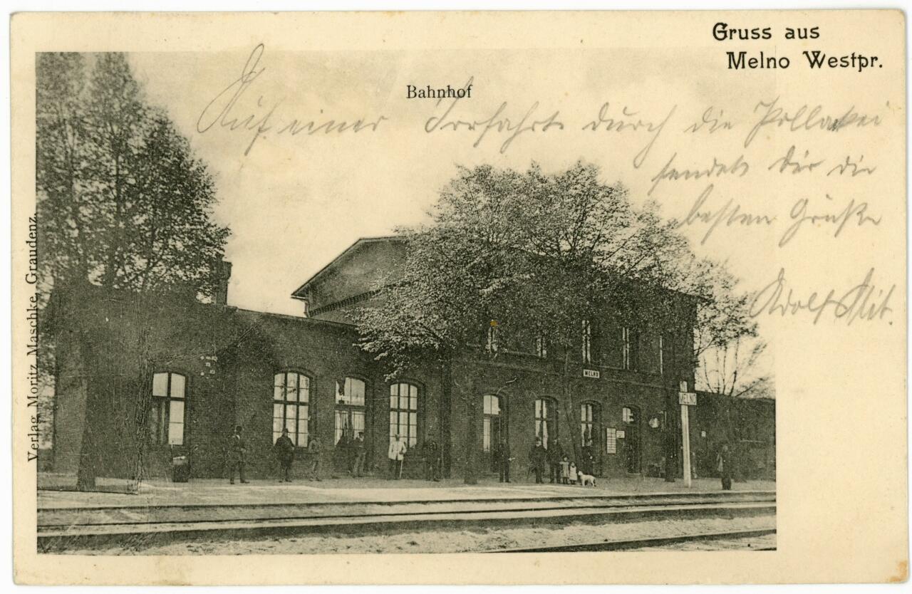 Mełno koło Grudziądza, w roku wydania karty pocztowej - 1905, było stacją węzłową.