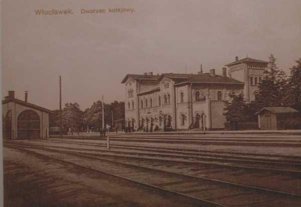 Budynek dworca od strony peronów i wjazdu z Kutna. Z lewej fragment lokomotywowni.