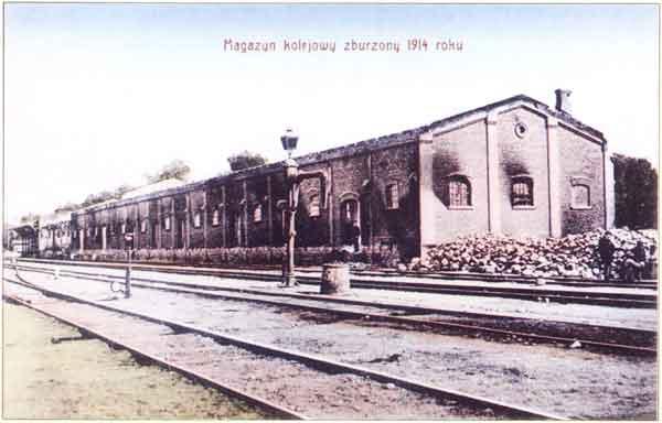 Zniszczenia I wojny światowej. Magazyn towarowy z rampą. Widok od strony Kutna.