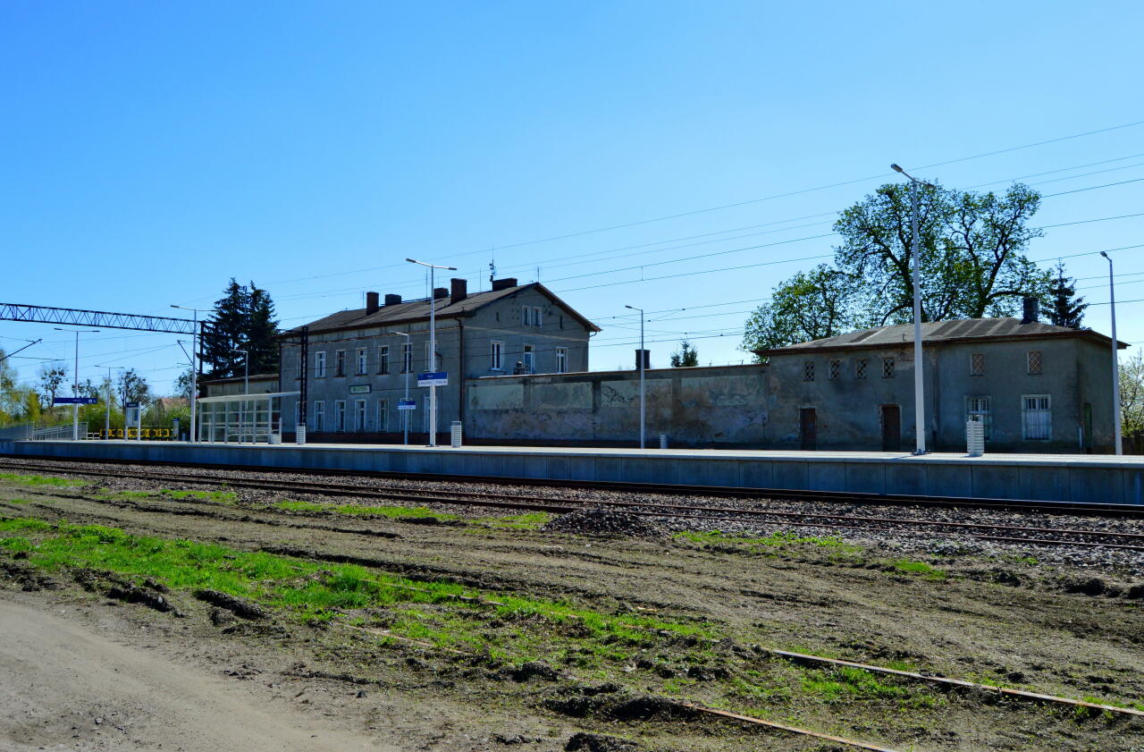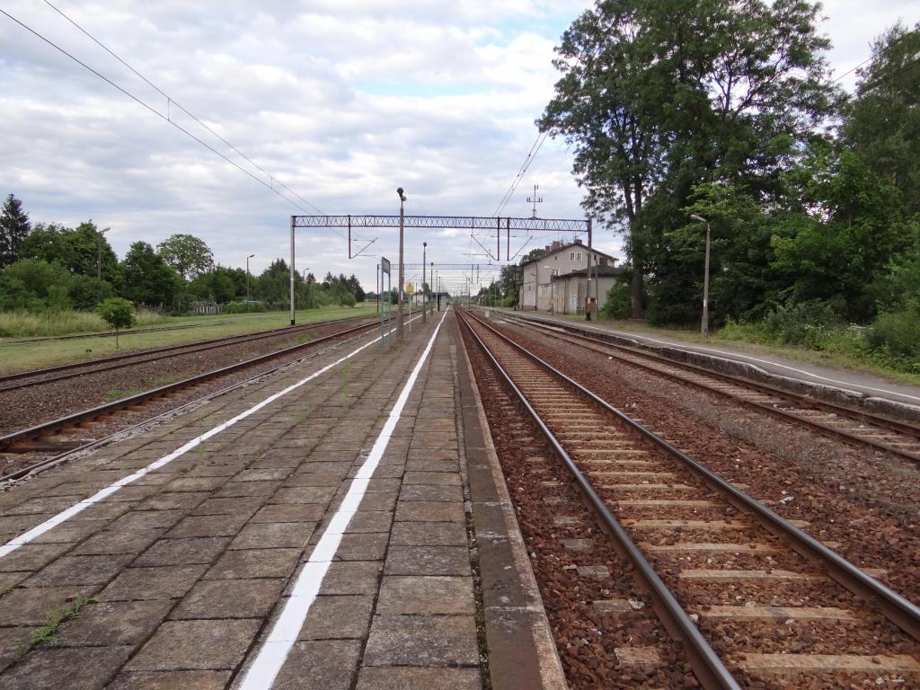 Widok z peronu 1 w kierunku Elbląga/Malborka. Budynek dworcowy znajduje się po lewej stronie.