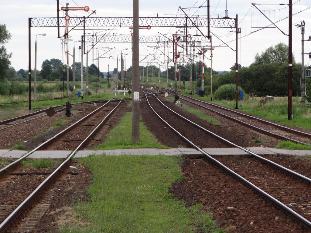 Zachodnia głowica rozjazdowa; wyjazd na Braniewo i Morąg. Widoczne wszystkie cztery semafory wyjazdowe. Przejazd drogowy w Bogaczewie (wschodni). Po lewej poza kadrem nastawnia wykonawcza Bc1. Widok w kierunku Braniewa i Morąga. 41,6 km/ 84,9 km.