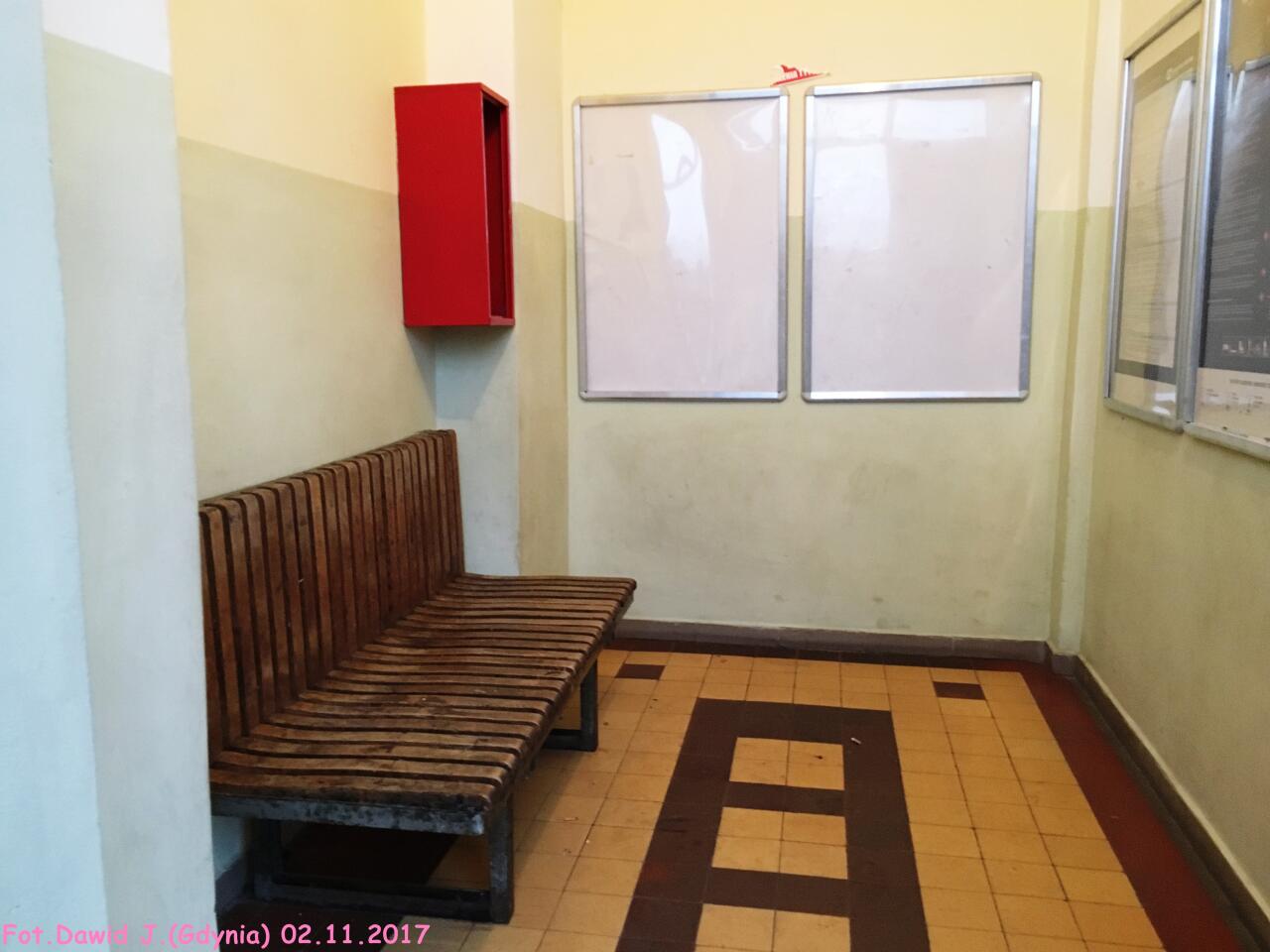 Wnętrze budynku dworcowego. Poczekalnia dla podróżnych.