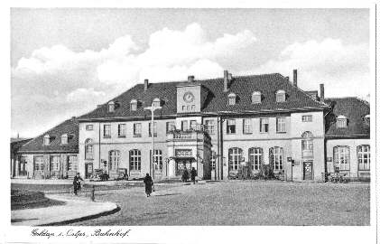 Gołdap. Podróżni oczekujący przy budynku stacyjnym.