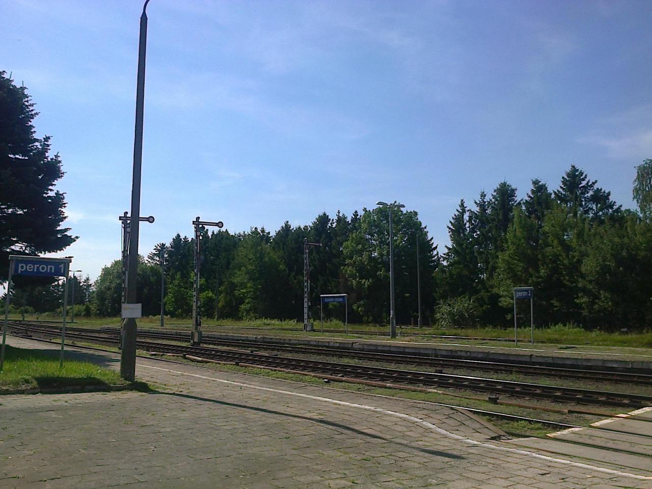 Gdańsk Osowa - semafory wyjazdowe w kierunku Kościerzyny. Widoczne oba perony i fragment przejścia naziemnego na peron 2.