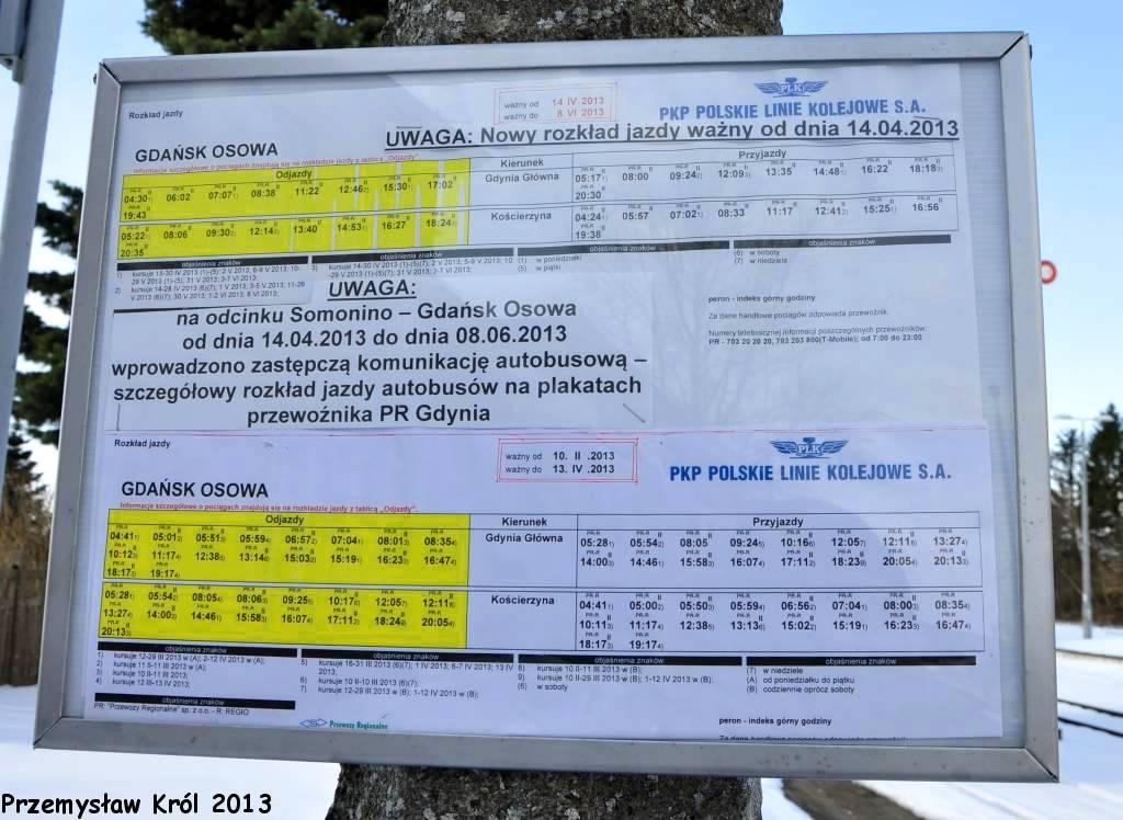 Rozkłady jazdy nowy i stary wraz z komunikatem dla podróżnych.