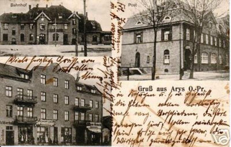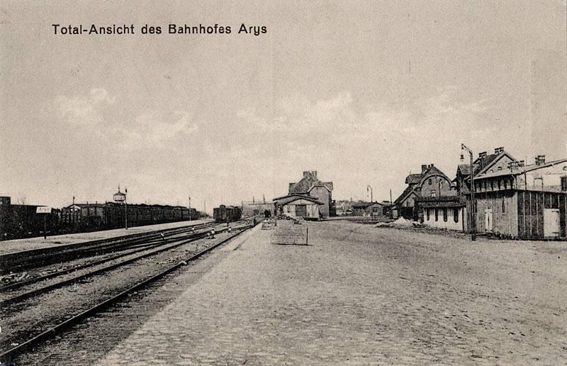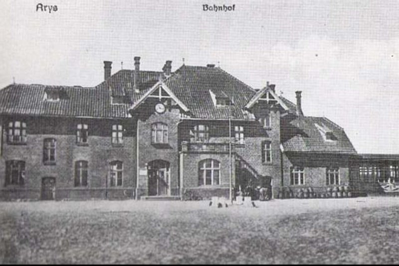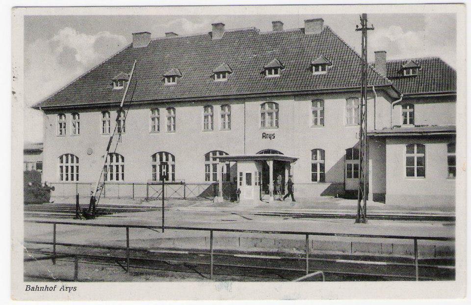 Dworzec w roku 1942 - zdjęcie ze strony FB Arys/Orzysz. W lewo Ełk i Giżycko, w prawo Mrągowo/Czerwonka i Pisz.