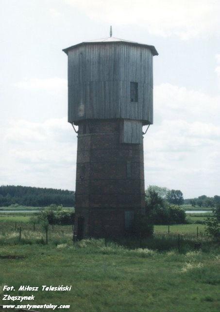 Wieża wodna w widoku orientacyjnym: Mrągowo/Czerwonka, kiedyś Pisz < > Ełk, kiedyś Giżycko. Zdjęcie z okna wagonu.