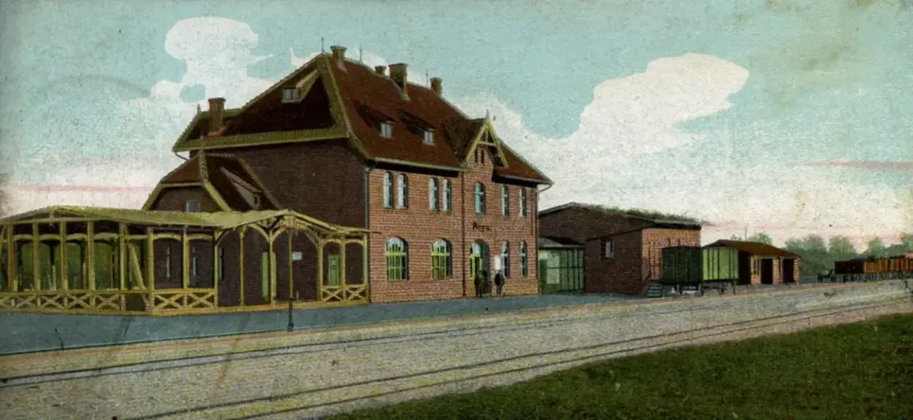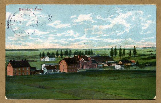 Dworzec w Orzyszu na pocztówce z ok. 1905 r. Widok od strony wjazdów z Ełku i Giżycka.