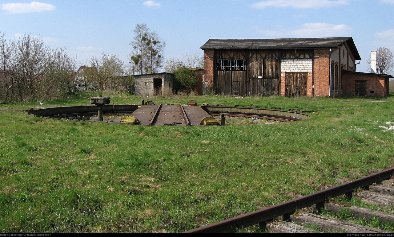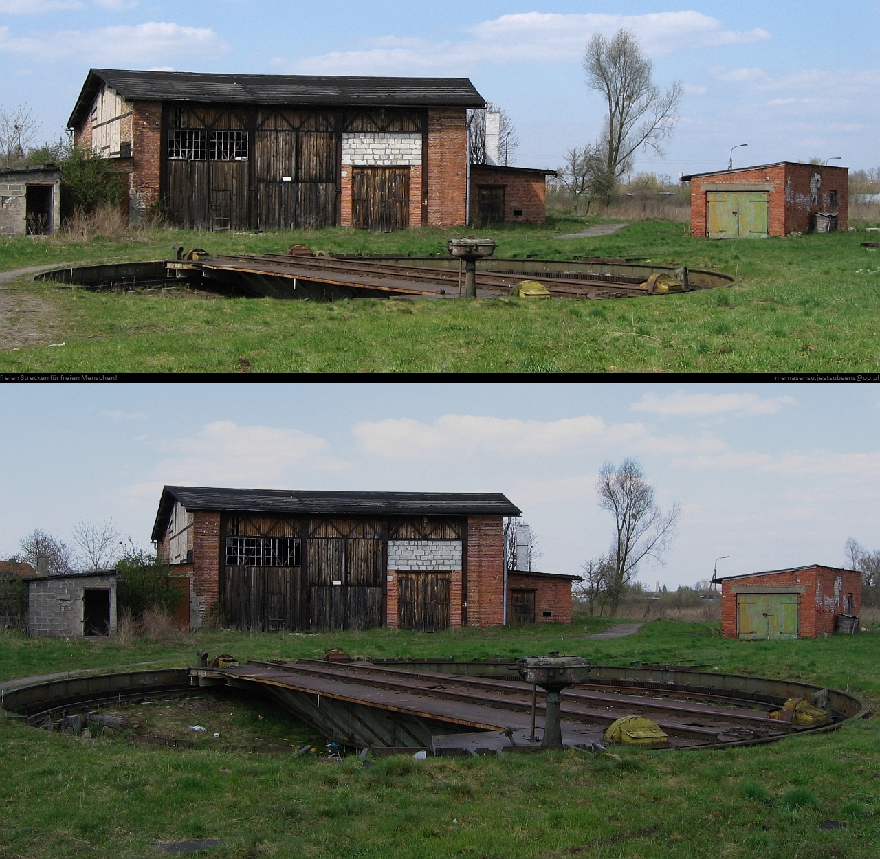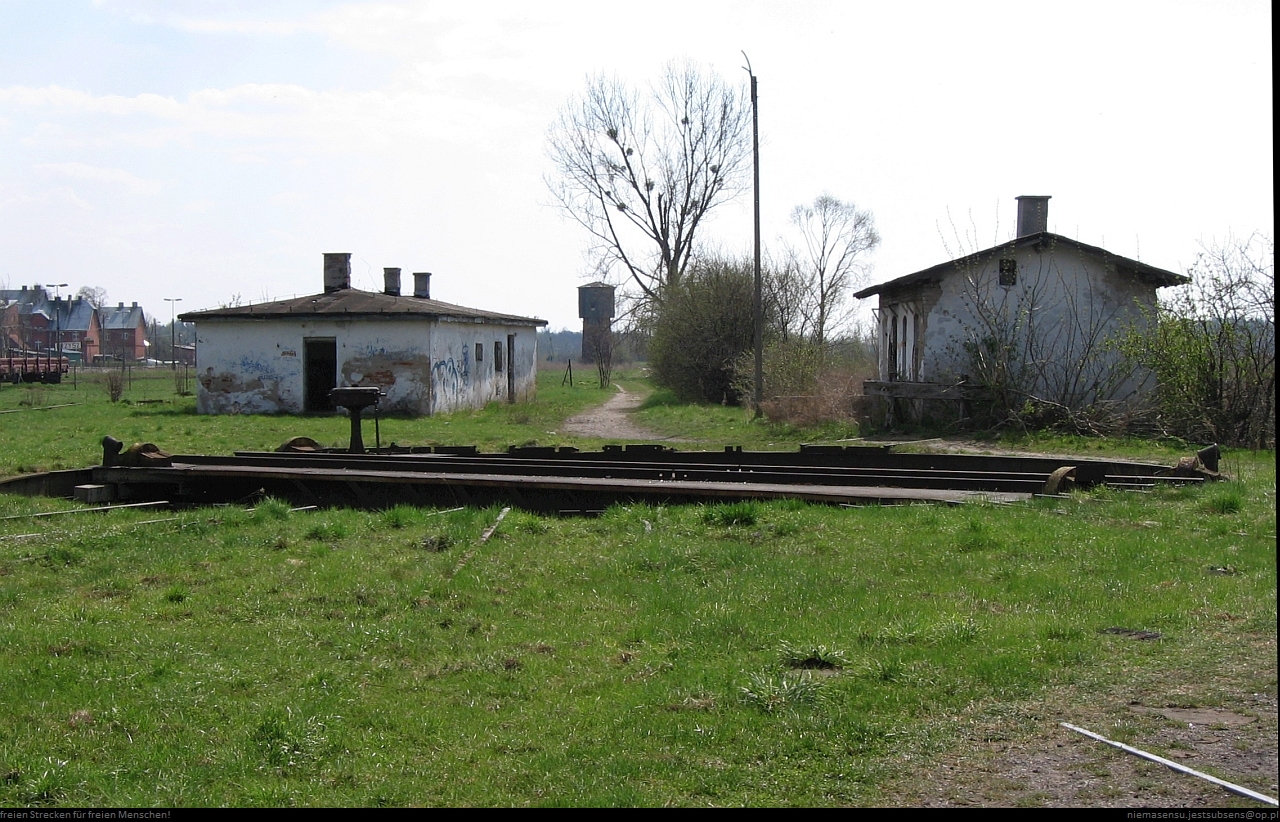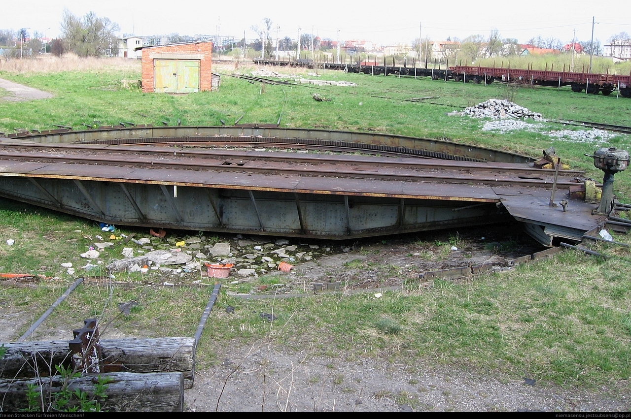 Mała (16-metrowa) obrotnica zrównoważona z czasów kolei pruskich. Ręczny mechanizm korbowy, blachownicowe przęsło, poniżej tor obwodowy i wieniec zębaty.