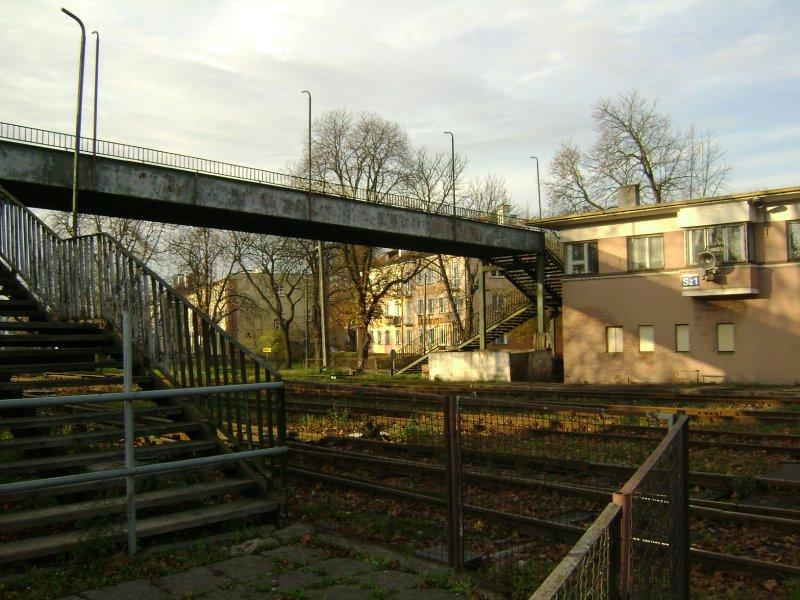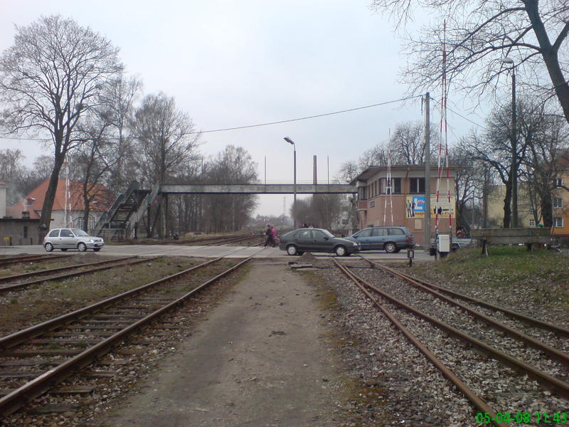 Nastawnia wykonawcza i zamknięta kładka nad torami. Z prawej, poza kadrem przejazd przez ul. Warszawską. Widok w kierunku północnym: w prawo perony, w lewo Olsztyn, Wielbark/Ostrołęka.