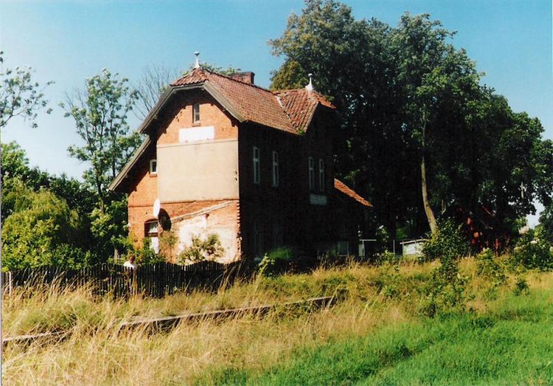 Widok na dawny peron i w kierunku Szczytna. Budynek dworcowy znajduje się po prawej stronie. Pozdrowienia dla uprzejmych mieszkańców.