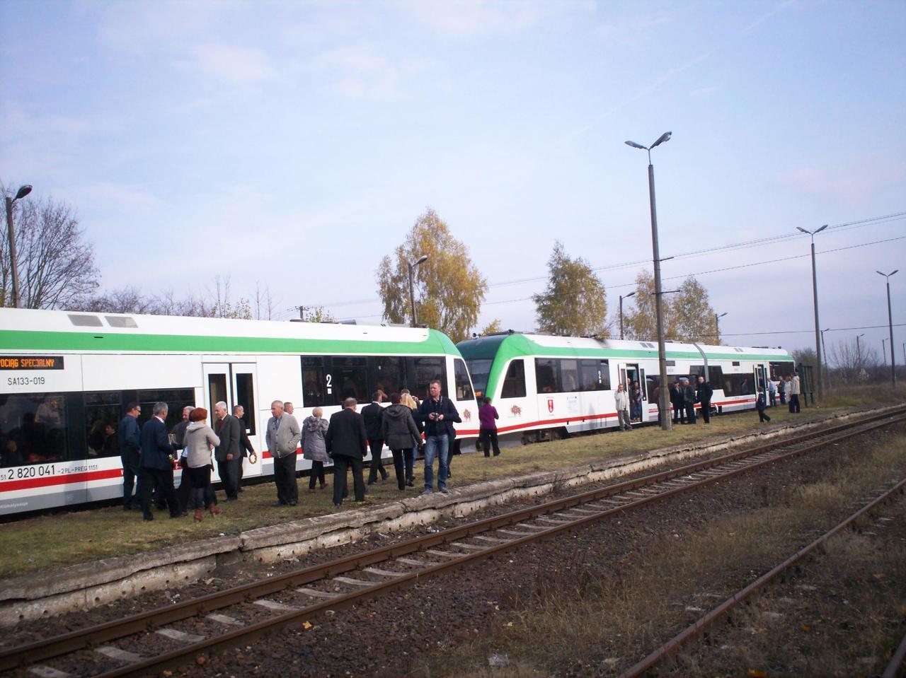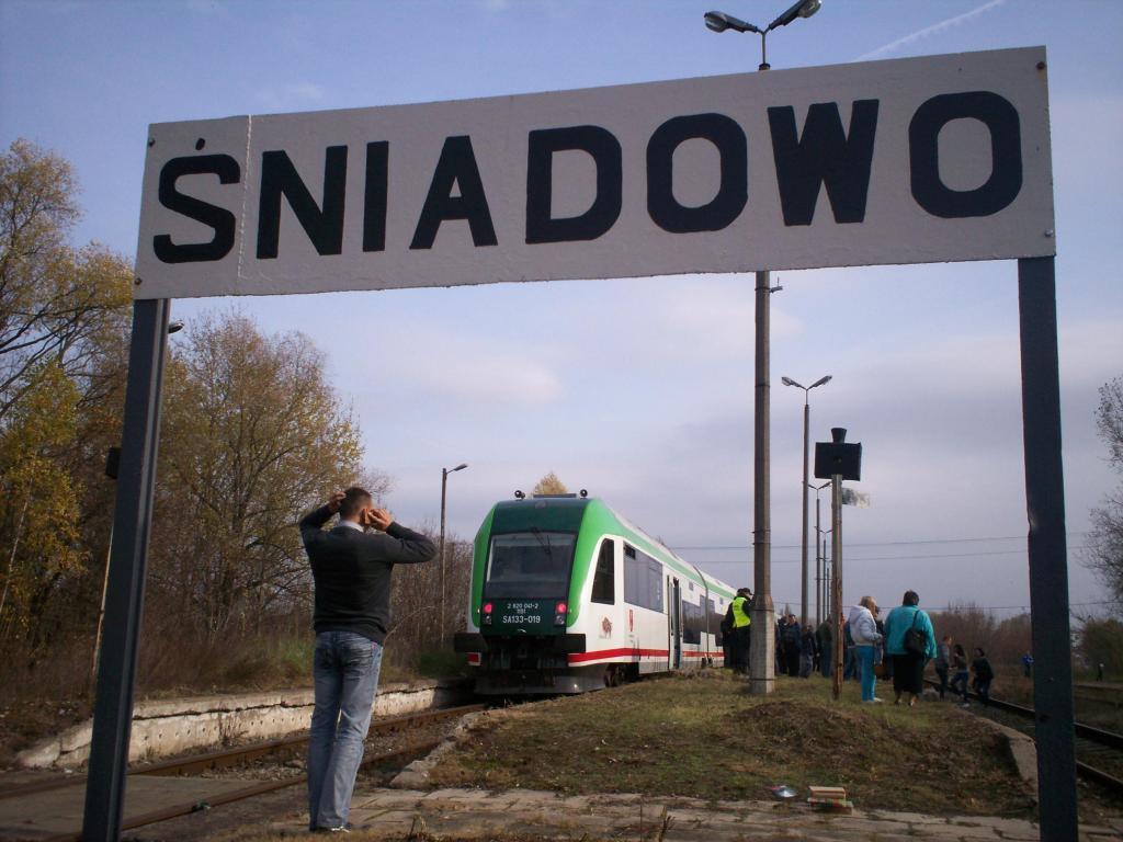 SA 133-019 i SA133-020 jako pociąg specjalny z okazji 120-lecia linii kolejowej Ostrołęka - Łapy stoi na stacji Śniadowo.