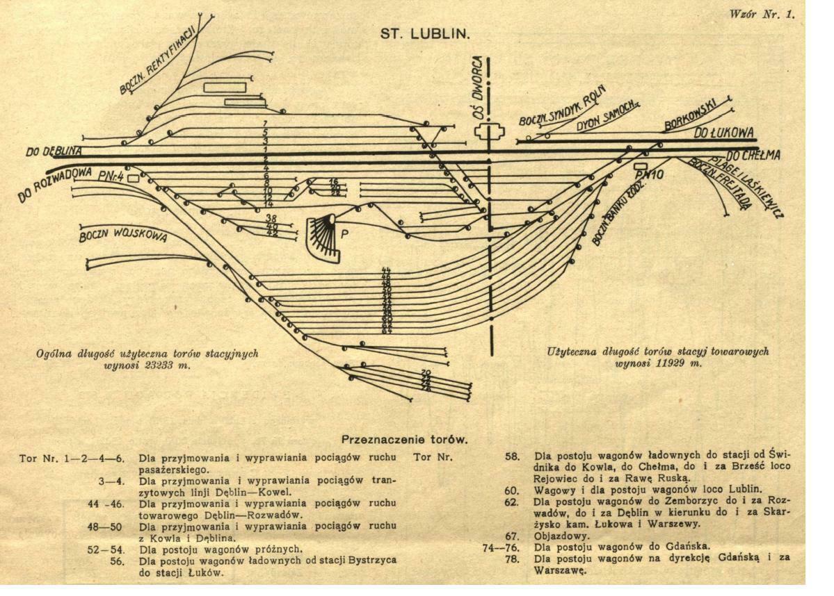 Lublin plan stacji z 1928 r. Źródło "Inżynier Kolejowy" z lat 30 XX w.