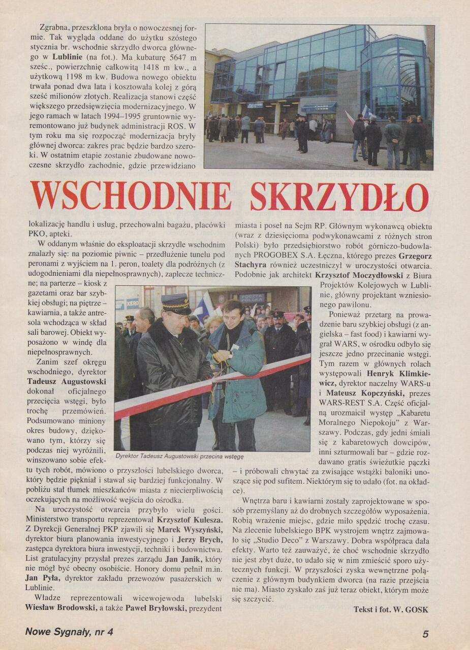 Skan artykułu z Nowych Sygnałów, nr 31/01, o otwarciu nowego skrzydła dworca w Lublinie.