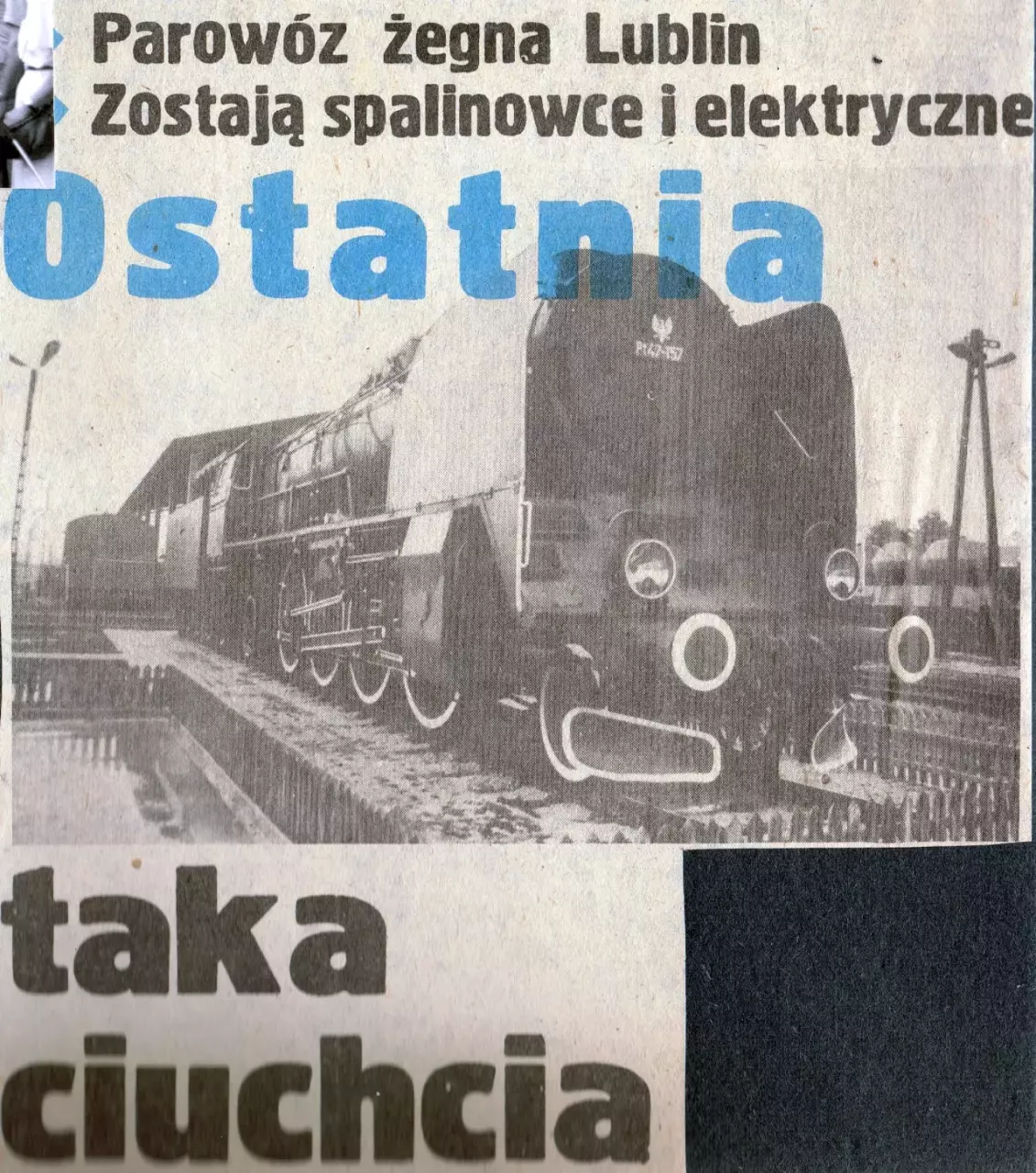 Nagłówek artykułu "Kuriera Lubelskiego" o ostatnim wjeździe parowozu na stację Lublin.